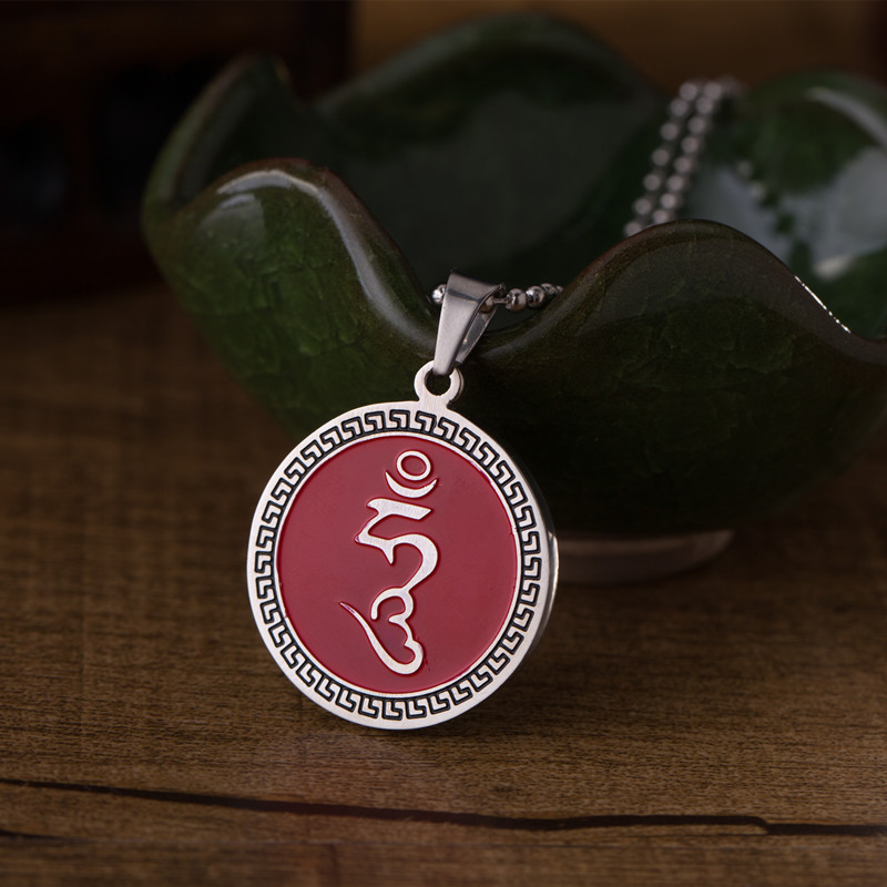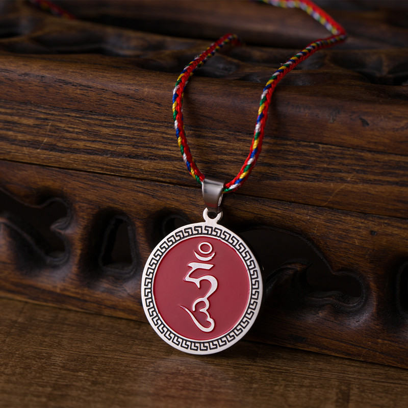 包邮结缘用品红色白钢吽字真言大明咒吊牌楞严咒护身符唵吊坠挂件