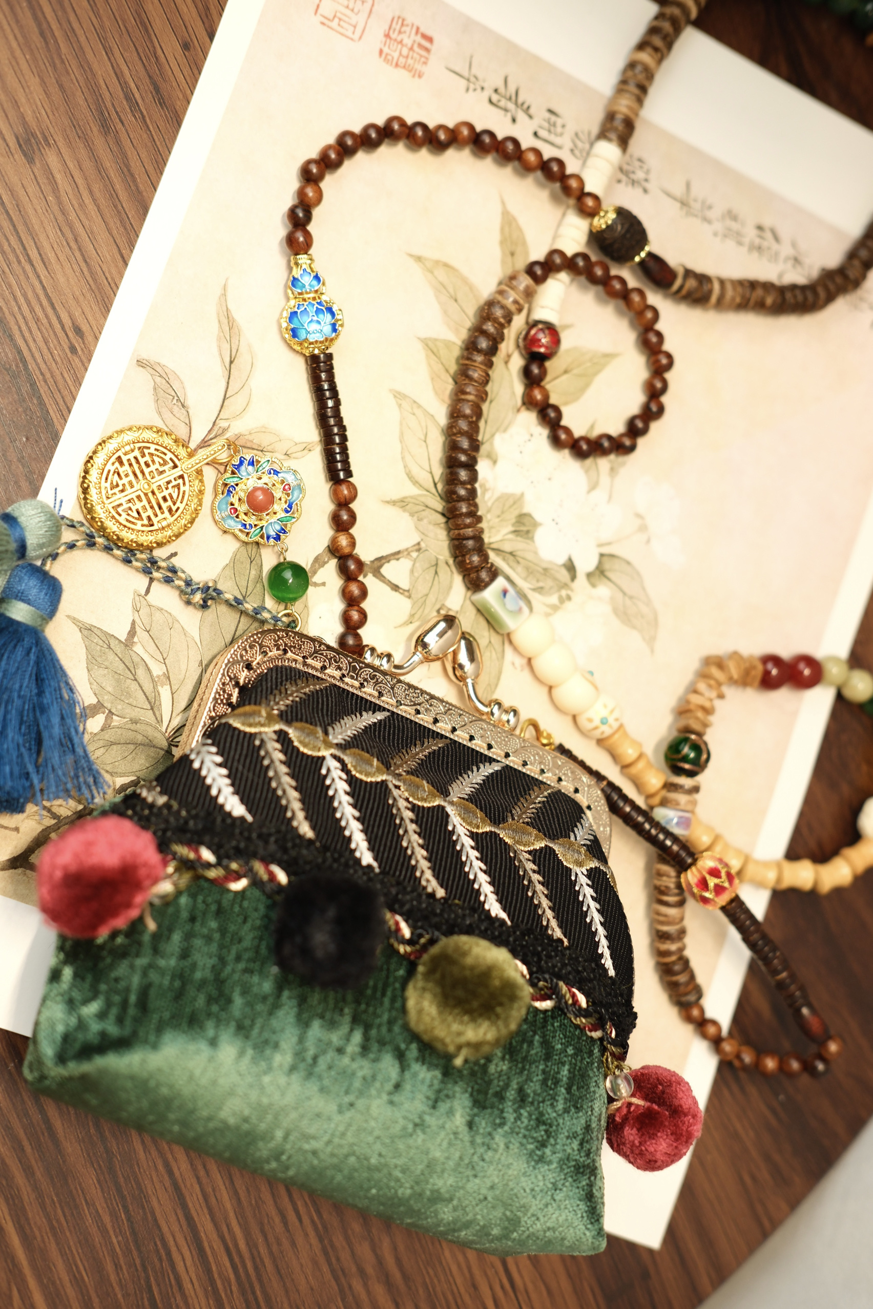 巨美斜挎包包民族风设计多宝葫芦檀木背背链