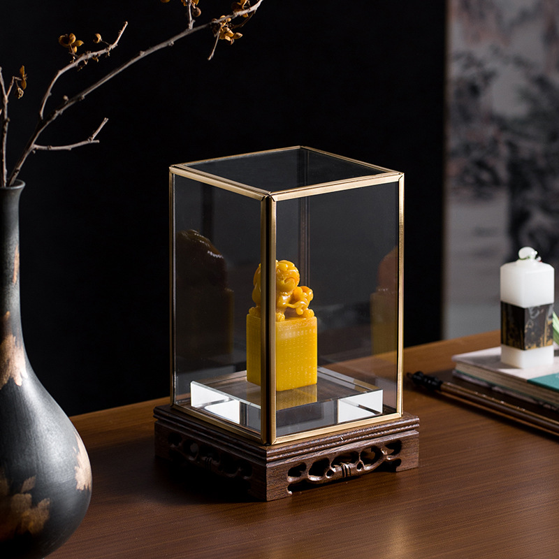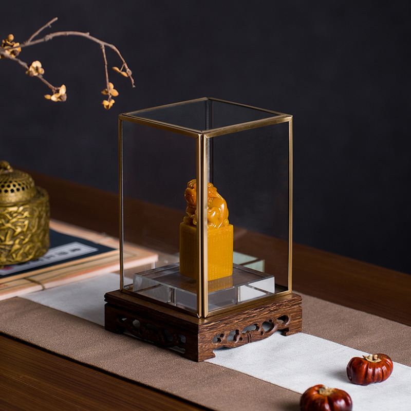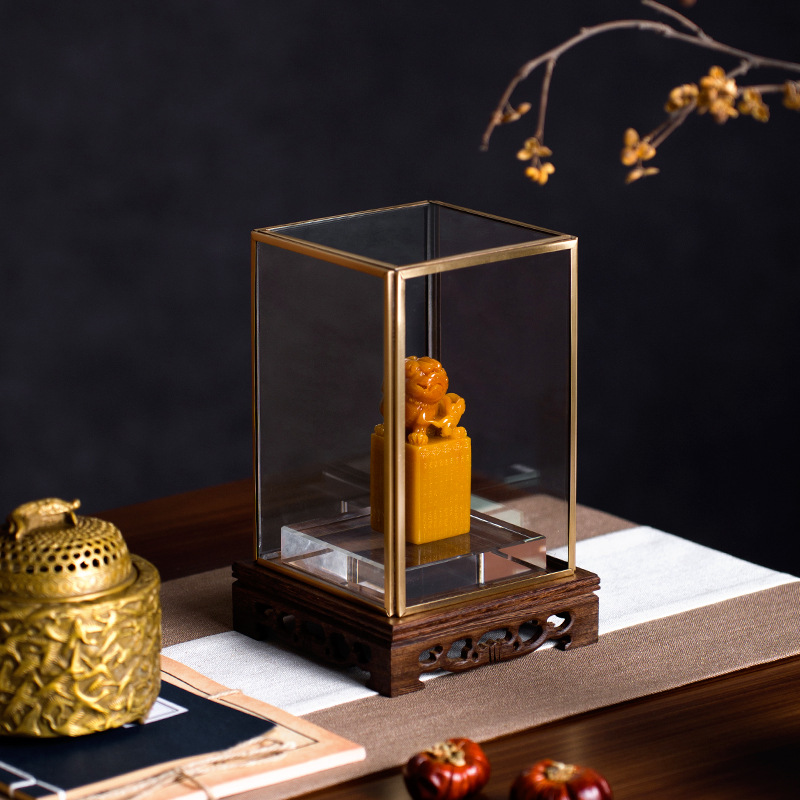 新中式玻璃罩玉玺印章摆件会所壁龛茶室摆件玄关茶室中古装饰品