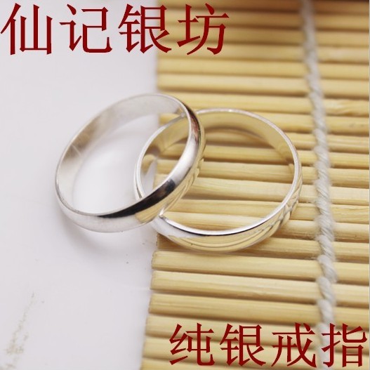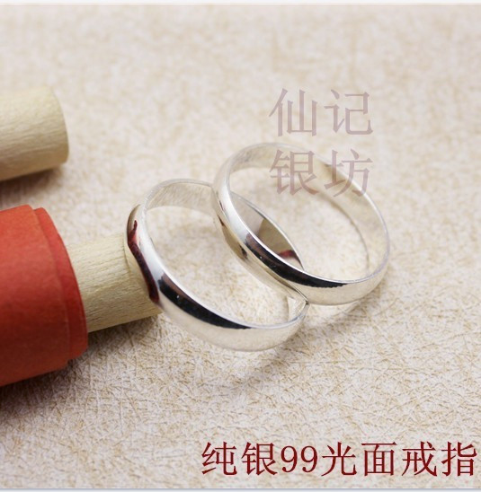 纯银戒指女ins小众设计男999足银指环简单细素圈光面情侣尾戒小指