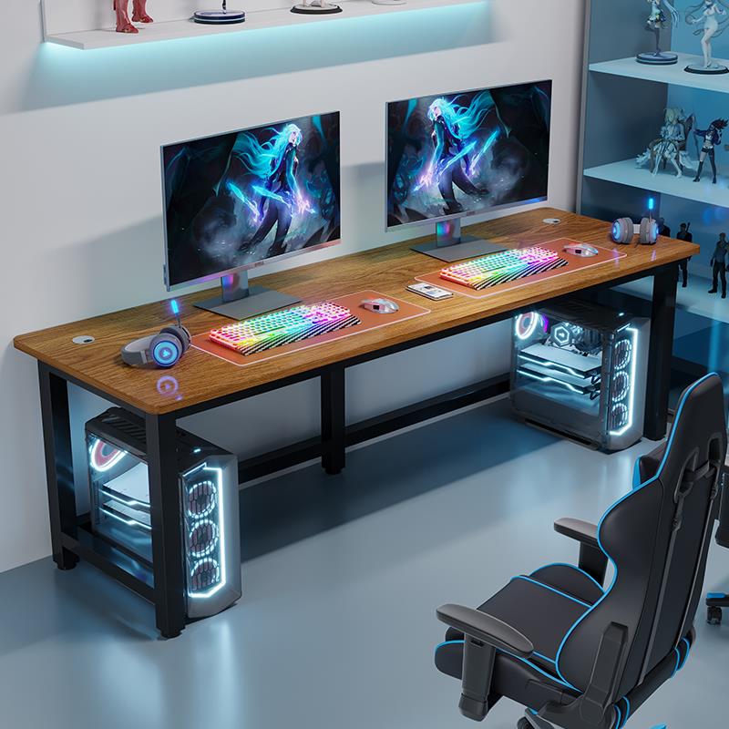 W7实木电脑桌台式电竞游戏桌双人书桌写字长条桌卧室家用办公桌简