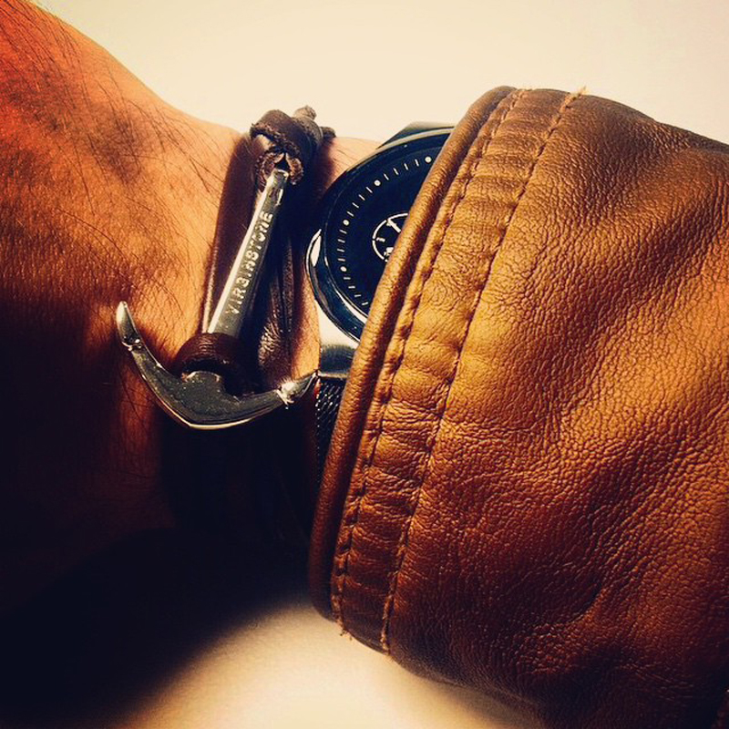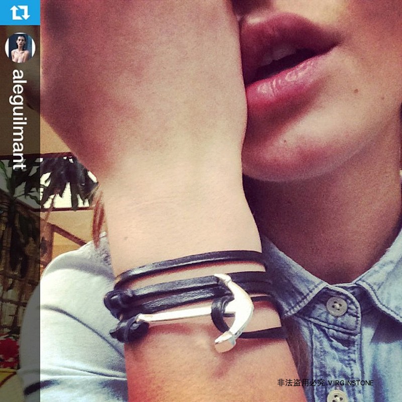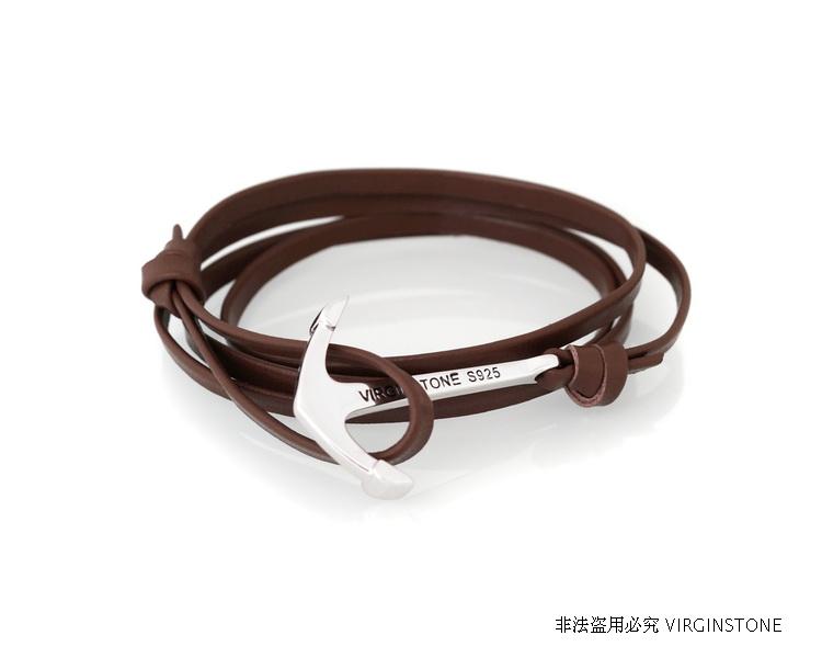 潮牌VIXTORM纯银手链 925银船锚饰品 男女情侣牛皮手绳设计师APS