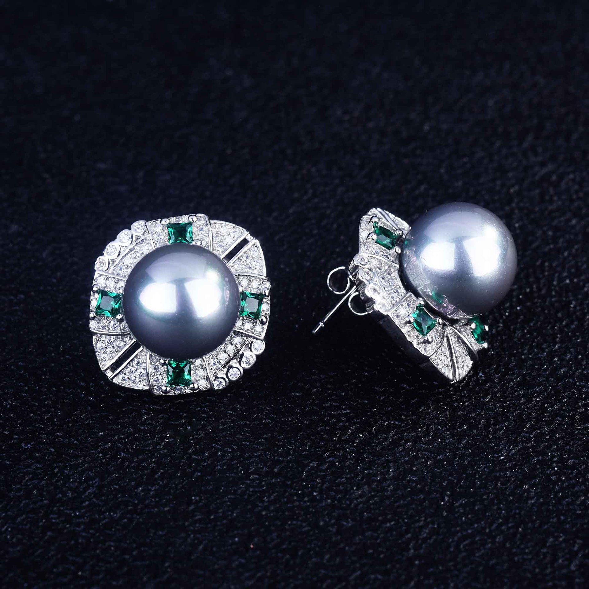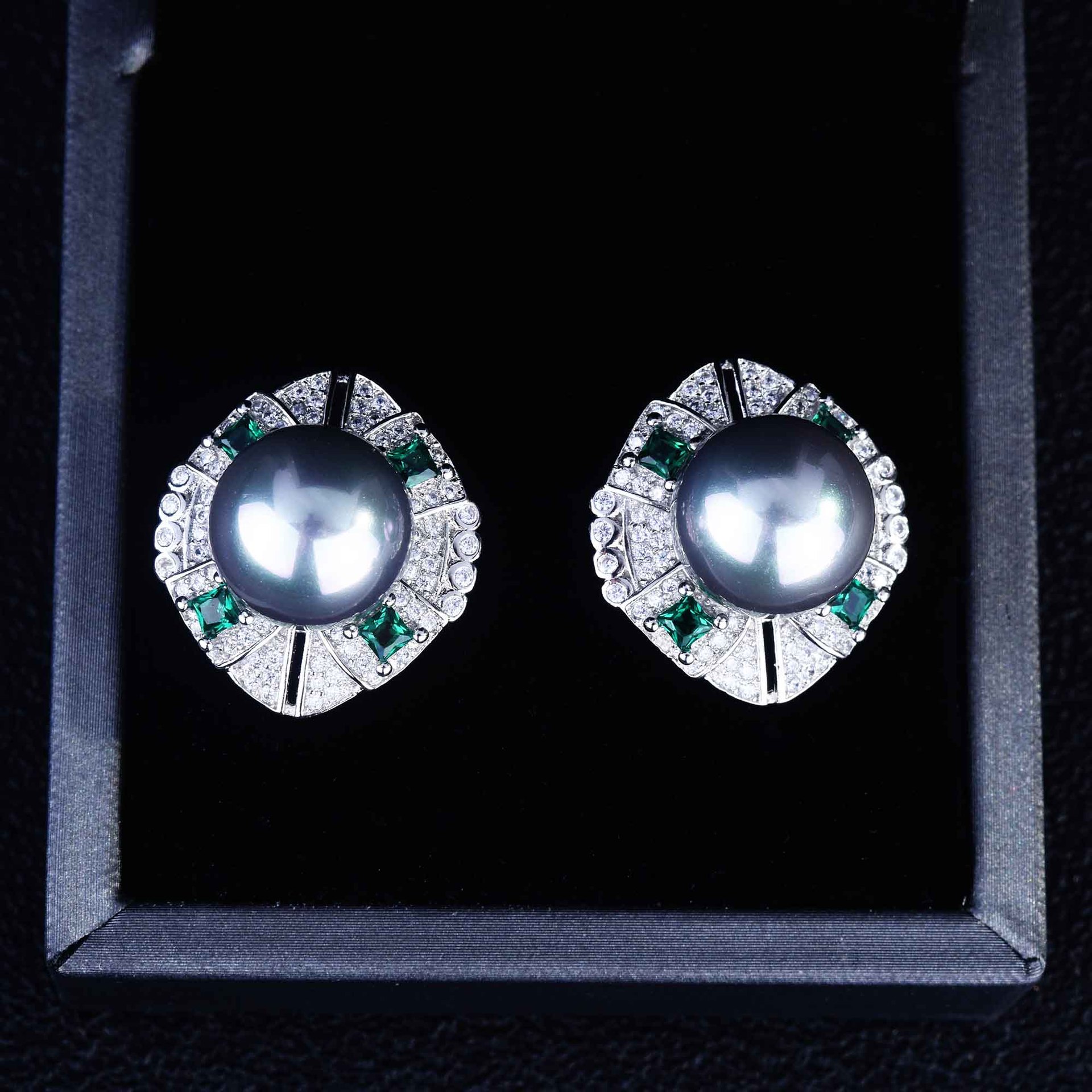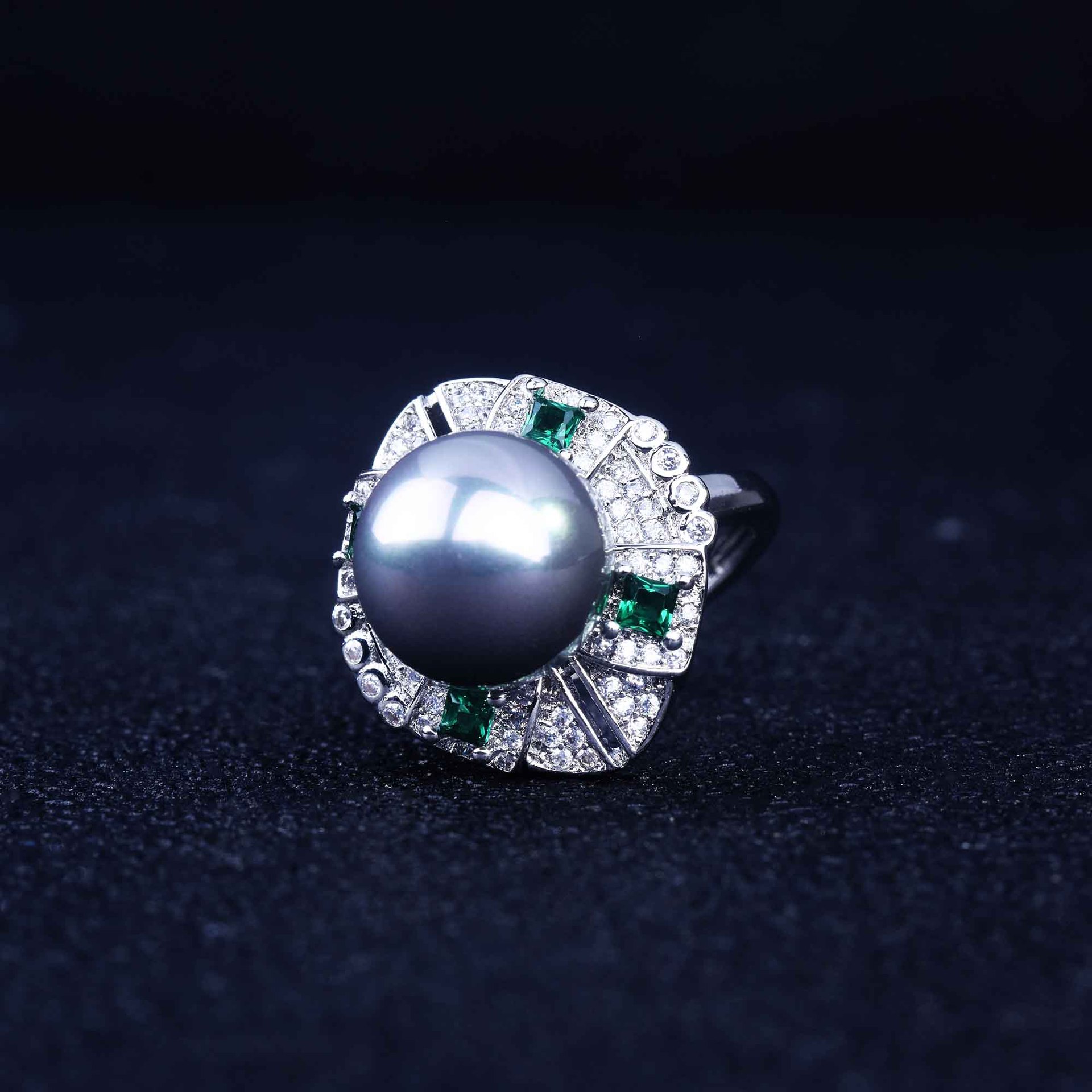 Young欧美轻奢仿大溪地黑珍珠套装 微镶满钻开口戒指彩宝耳钉项链