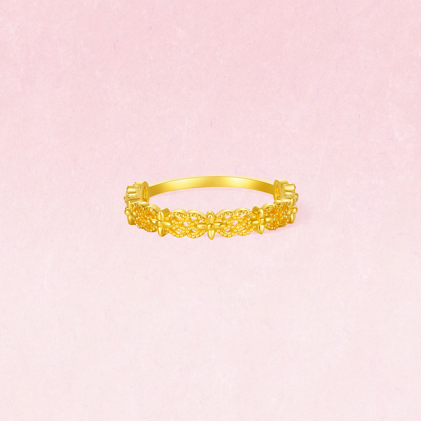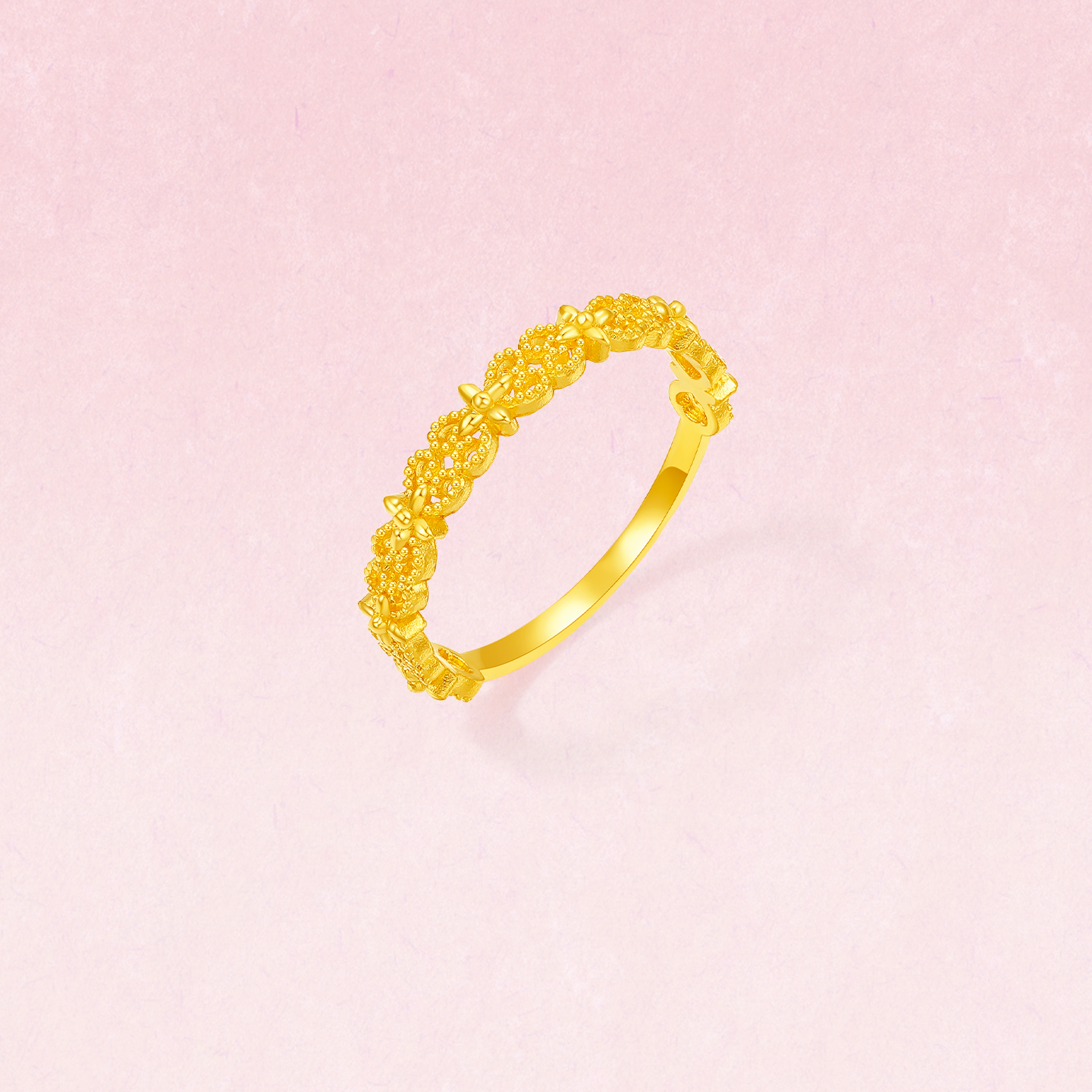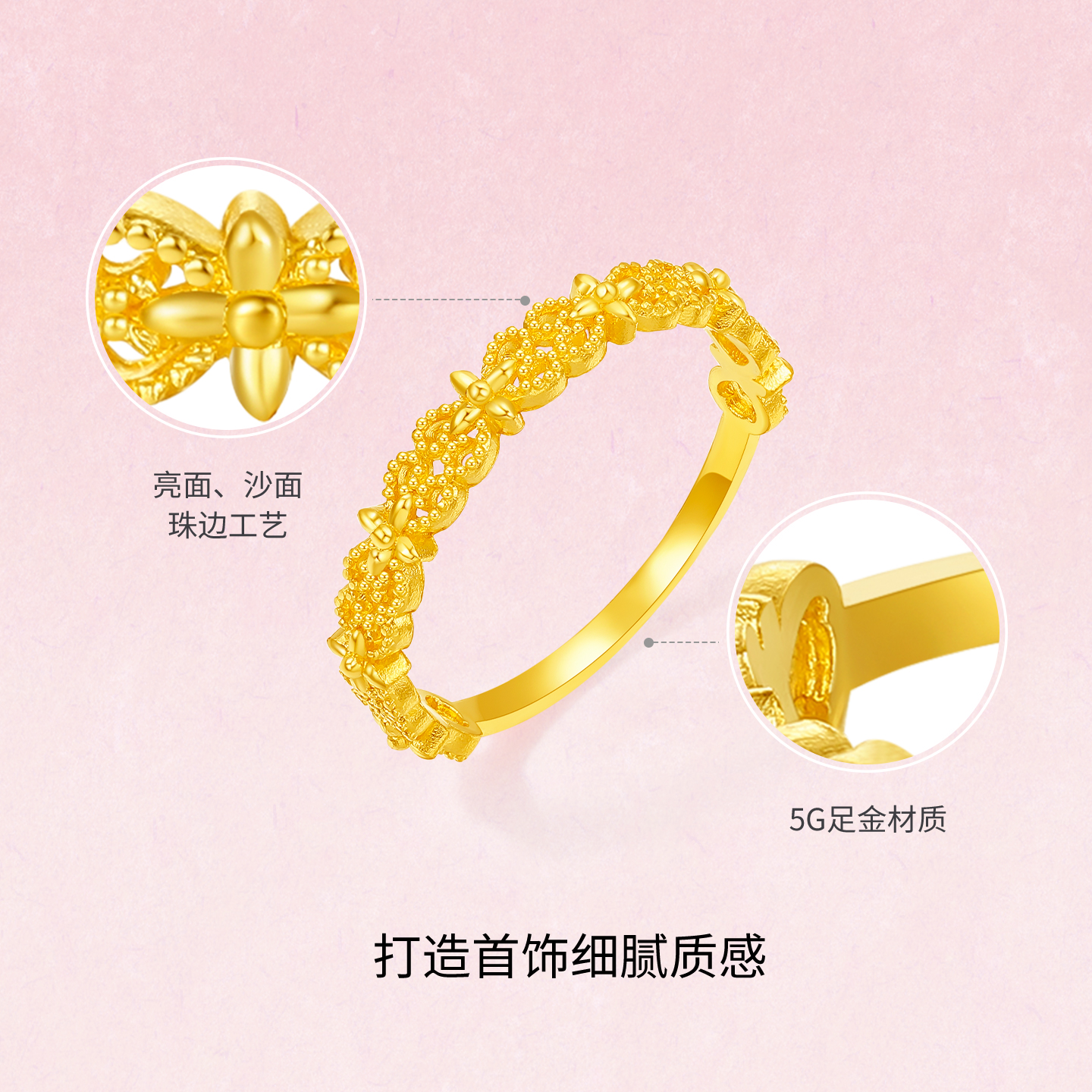 周六福黄金计价5G足金戒指金光熠熠蕾丝心语女戒蕾丝系列节日礼物