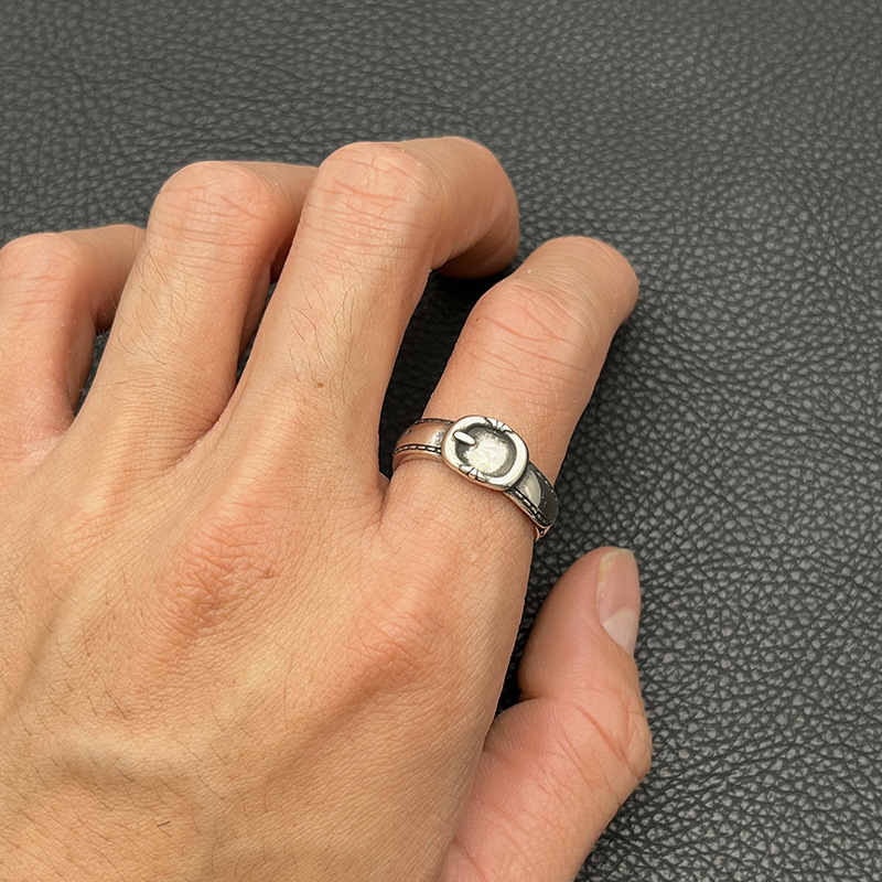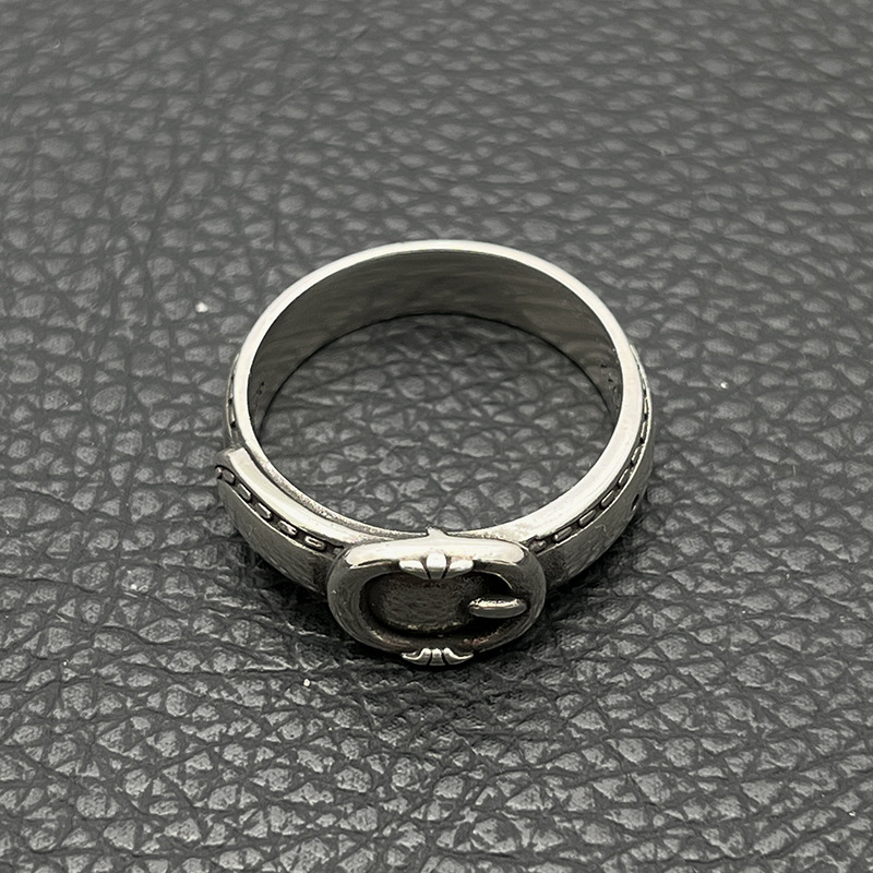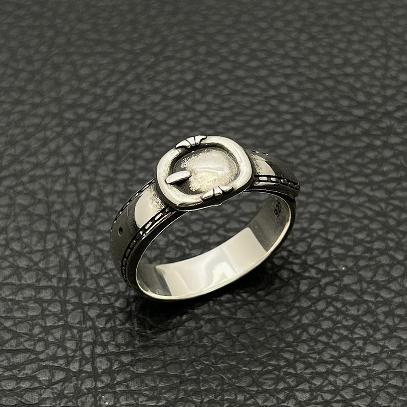 ODEK高级感复古腰带戒指欧美做旧个性皮带指环经典款个性男士银色