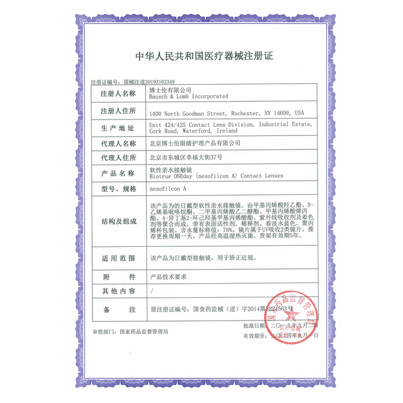 博士伦博乐纯日抛30片/盒一次性隐形近视眼镜薄款