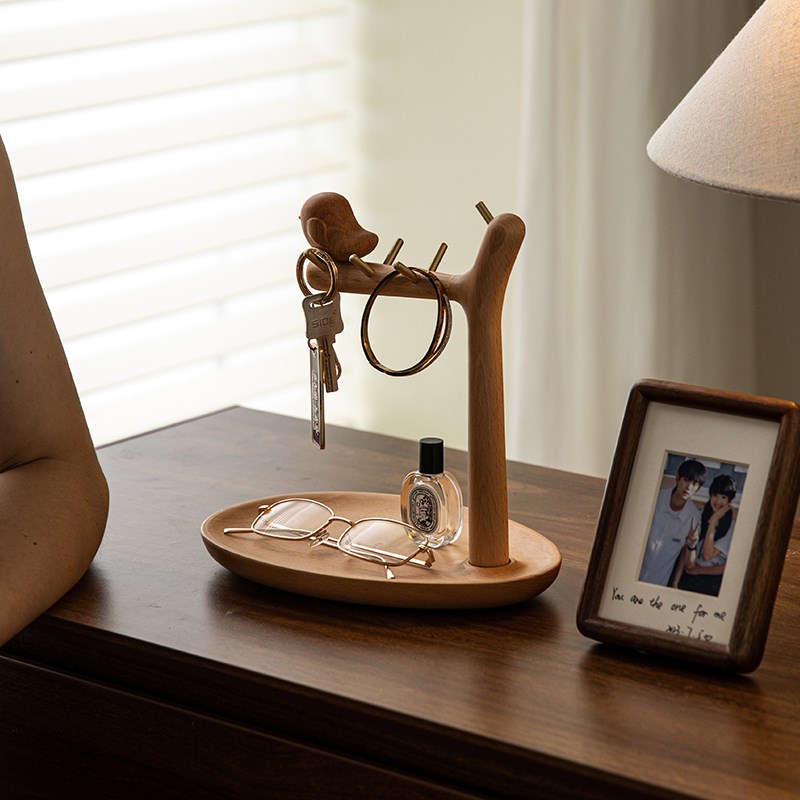 玄关装饰摆件桌面钥匙收纳盒入户门实木置物架客厅电视柜乔迁礼物