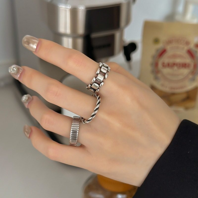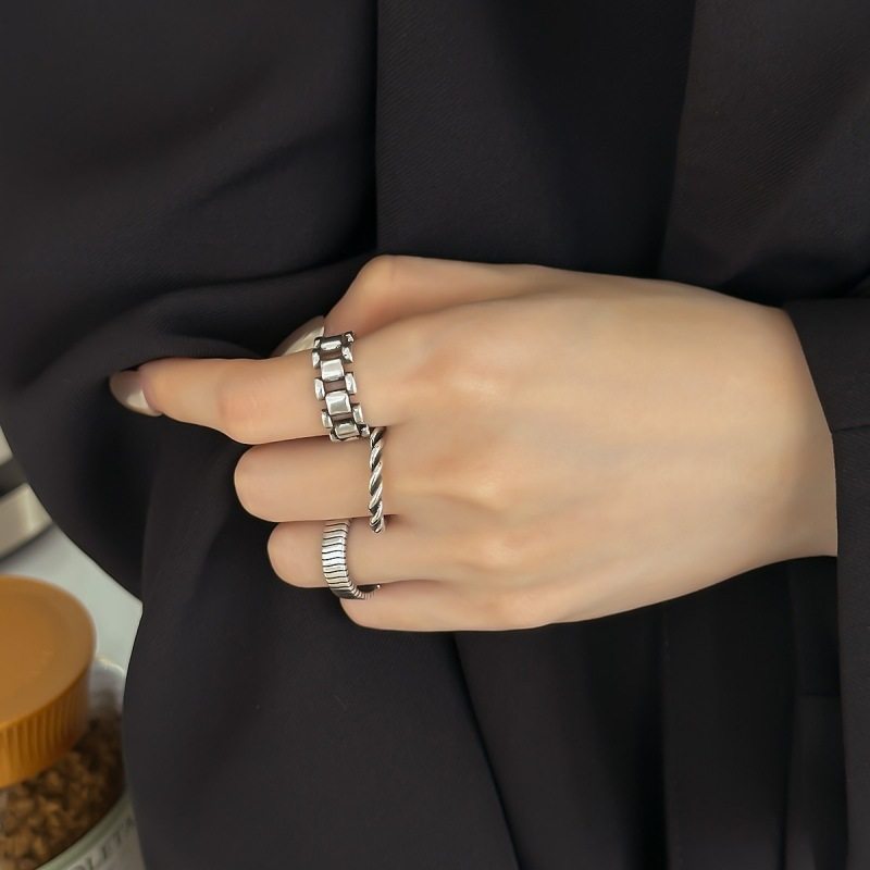 一恋几何表链戒指女复古做旧重工时尚个性开口指环ins食指