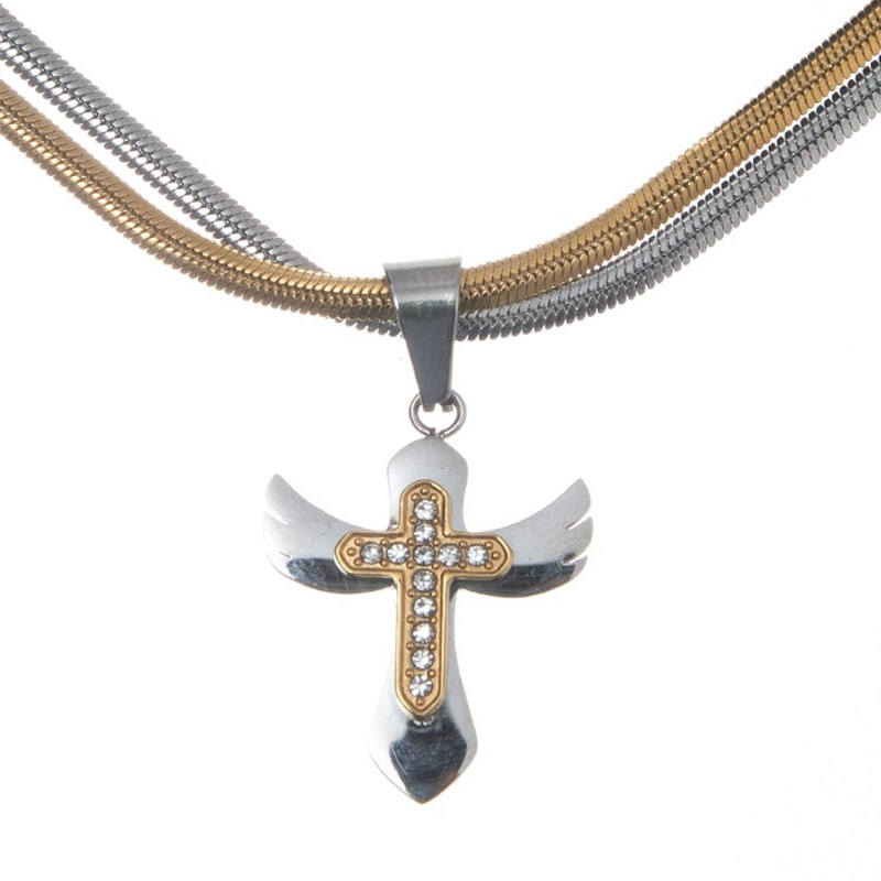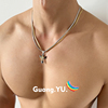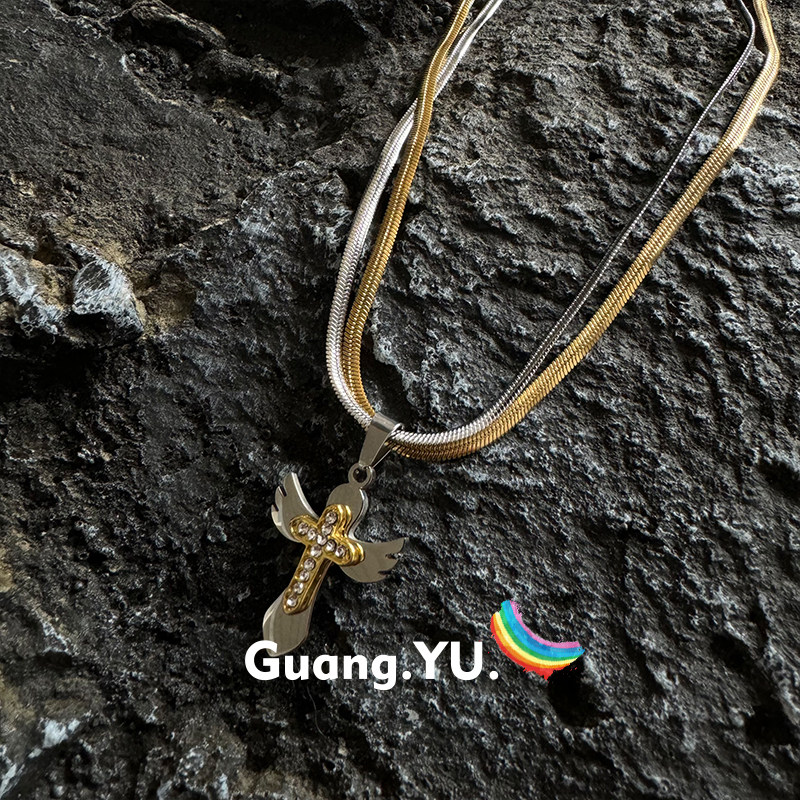 GuangYu金银拼色双层刀片十字架项链男款钛钢小众设计感锁骨链女
