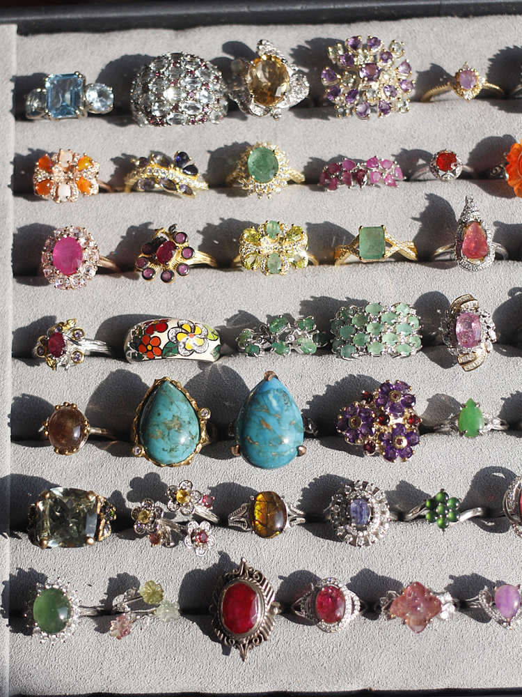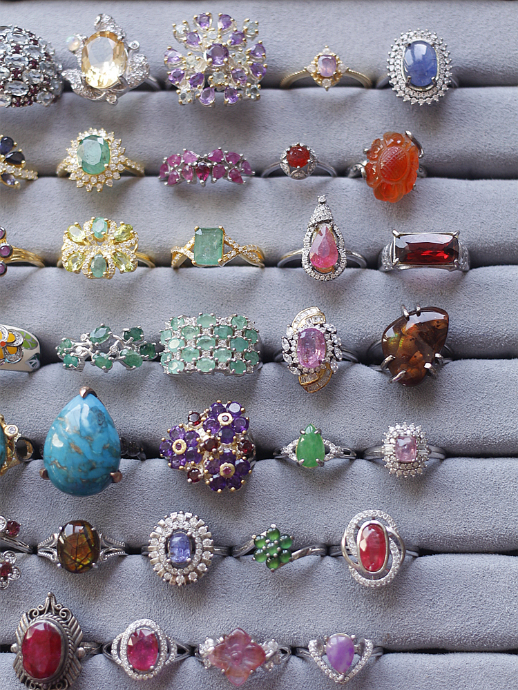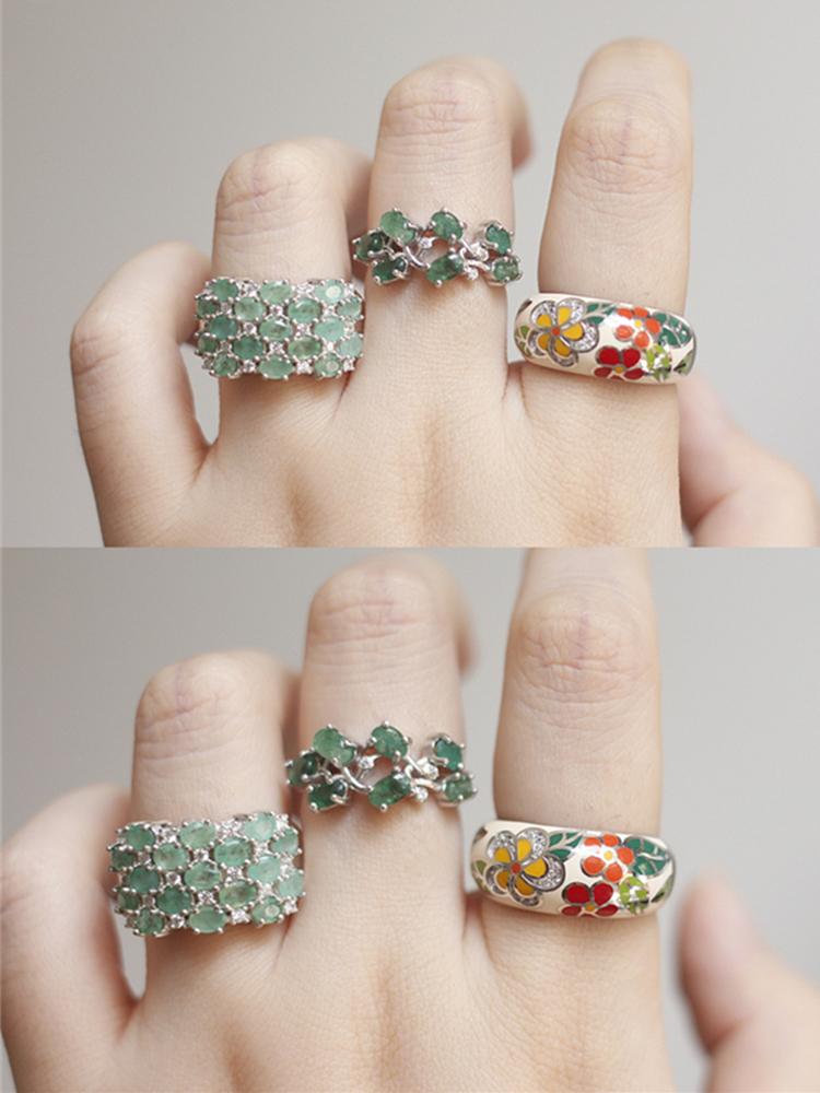 Asyouwish小彩宝美国订单天然祖母绿蓝红宝石榴石925银活口戒指女