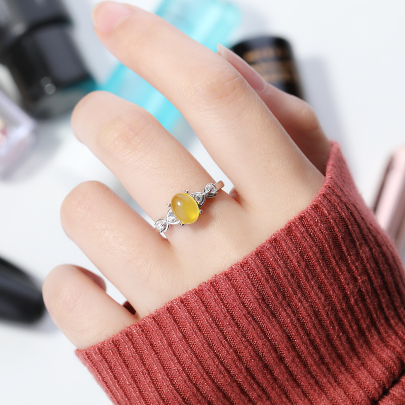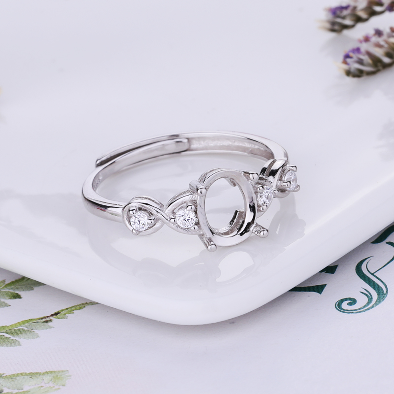 S925纯银戒托女diy镶嵌蜜蜡绿松石戒托切面尖底戒指空托 6*8 8*10