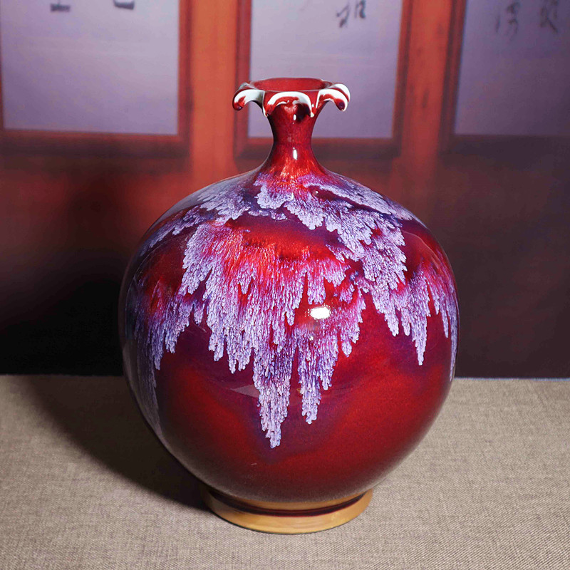 新品禹州钧瓷花瓶中式家居客厅装C饰陶瓷器创意摆件钧窑变红色花