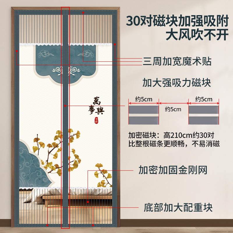 2025新款夏季防蚊门帘磁性自粘魔术贴免打孔家用卧室门帘纱门隔断