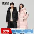 雪中飞2025冬新款二条纹男女情侣长款连帽羽绒服高充绒学院运动