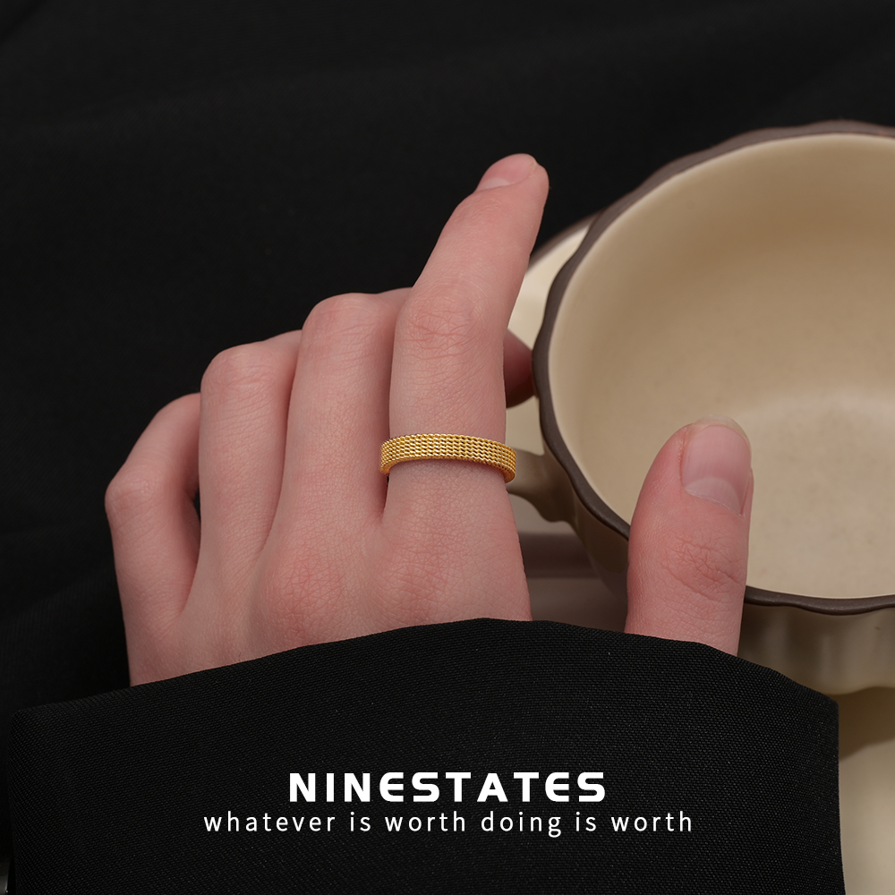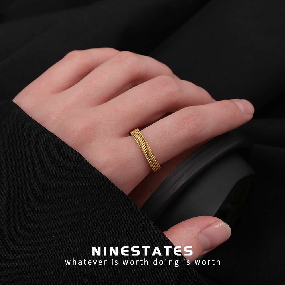 气质食指素圈戒指男女高级感彩金素戒时尚指环小指个性仿黄金尾戒
