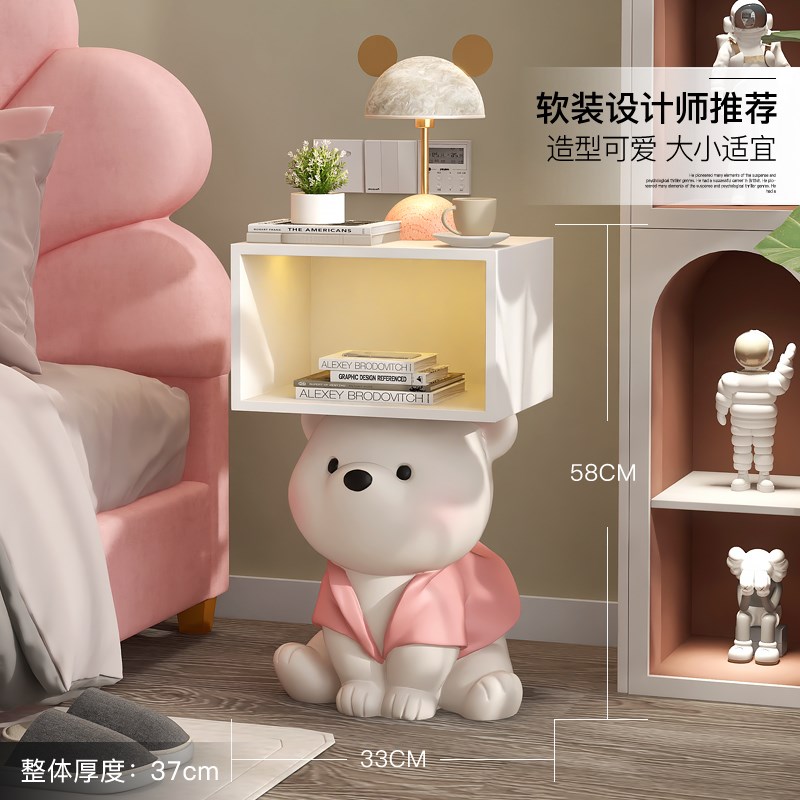 暴力熊奶油风儿童卧室床头柜装饰品客厅沙发旁边几置物柜落地摆件