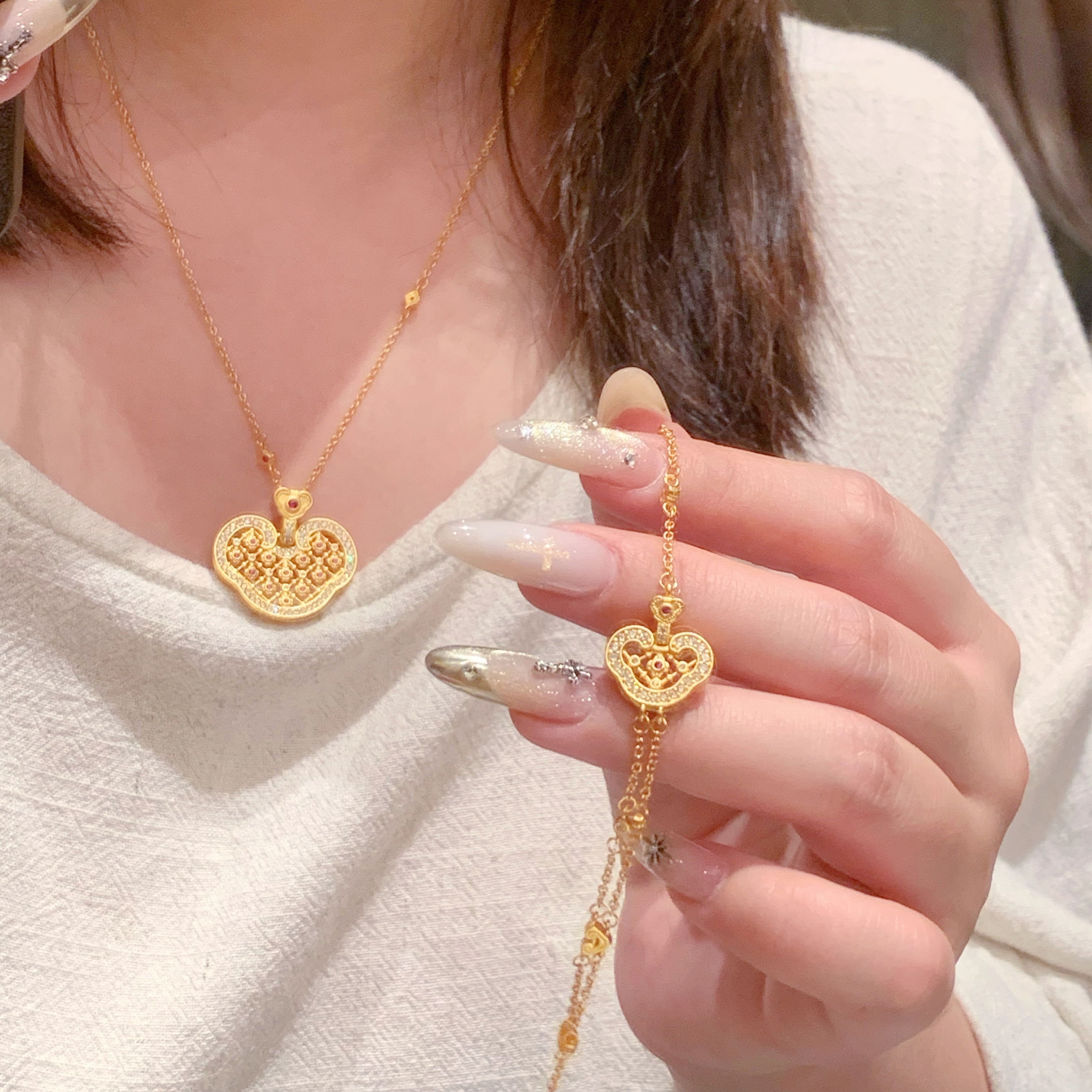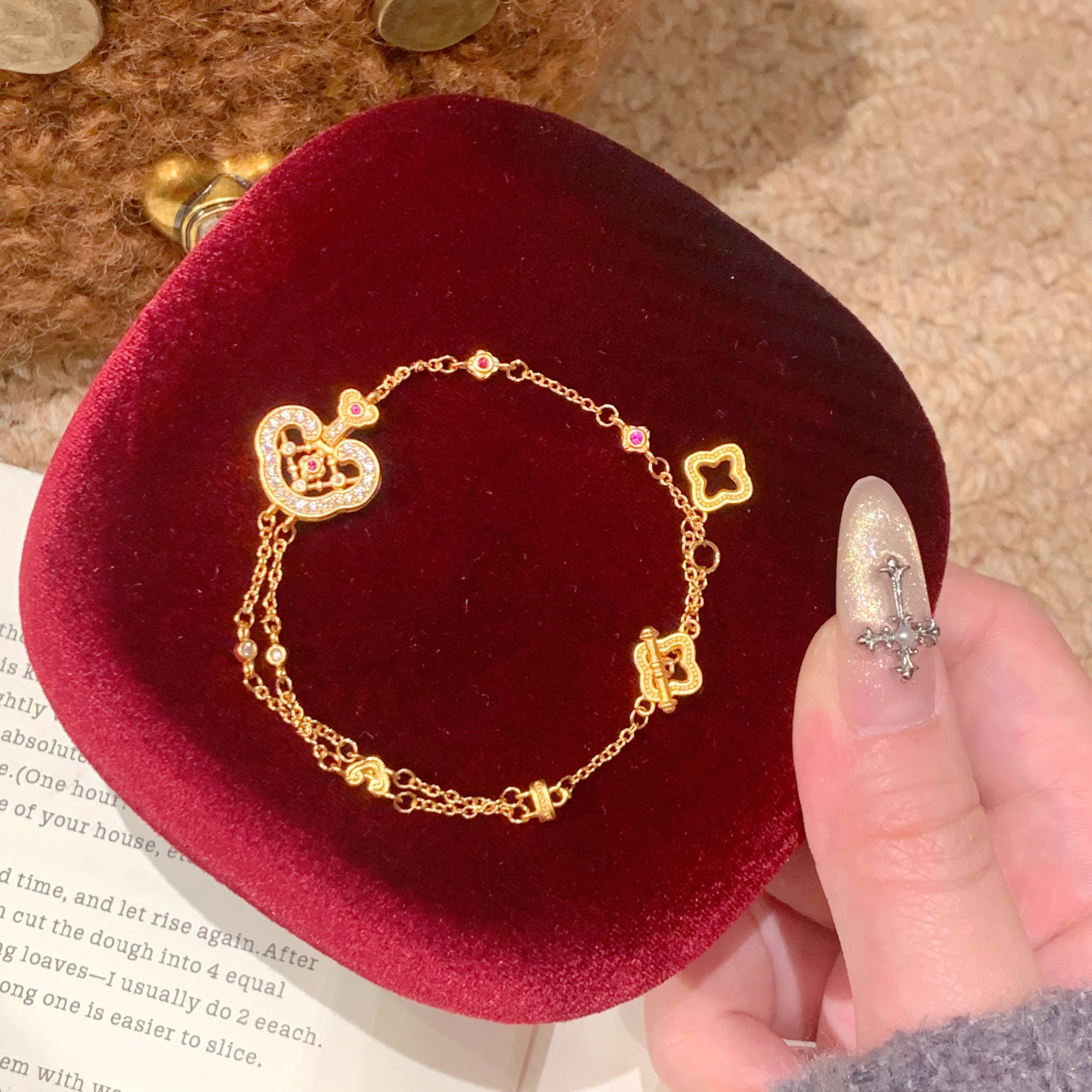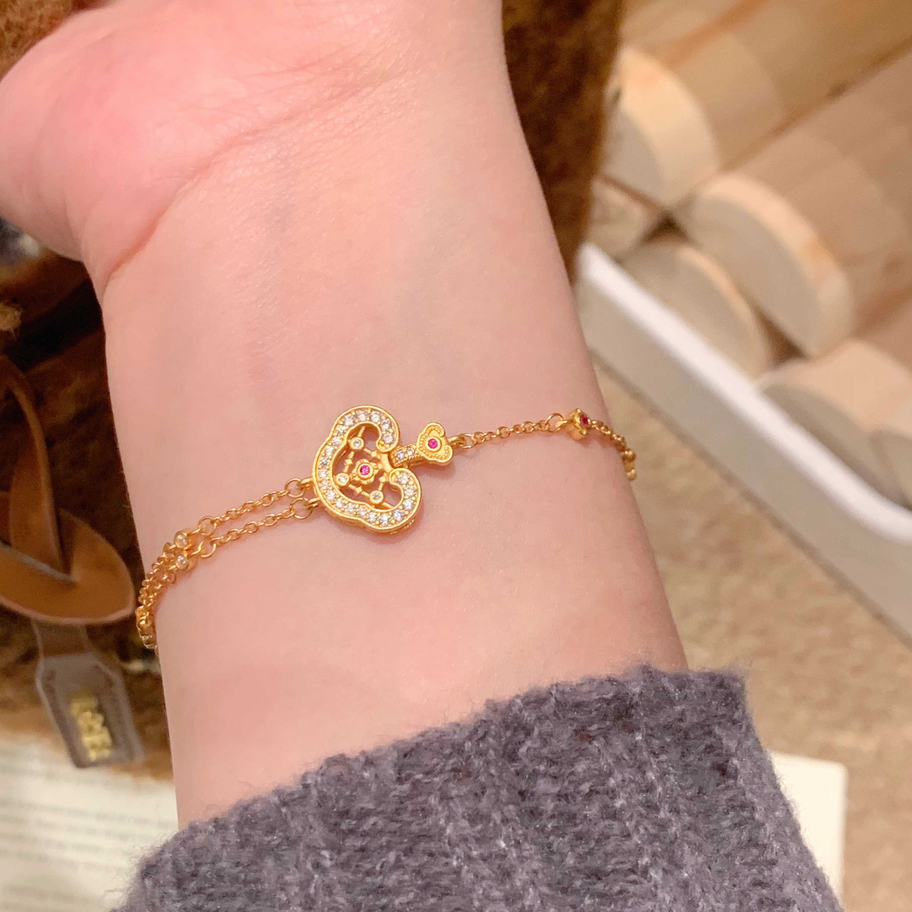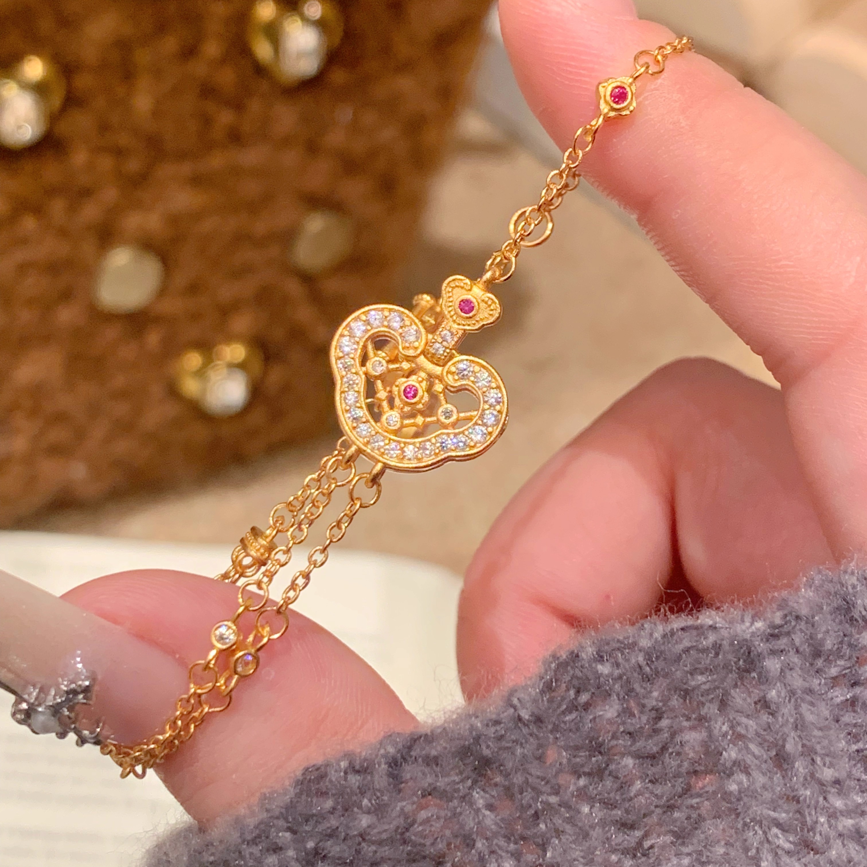 paula时序新中式国潮风丨许妍同款镂空点钻祥云如意锁包手链S061