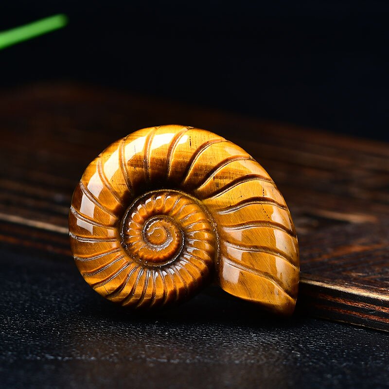 天然虎眼石原石海螺摆件黄色木变石吊坠饰品把玩件包挂车挂