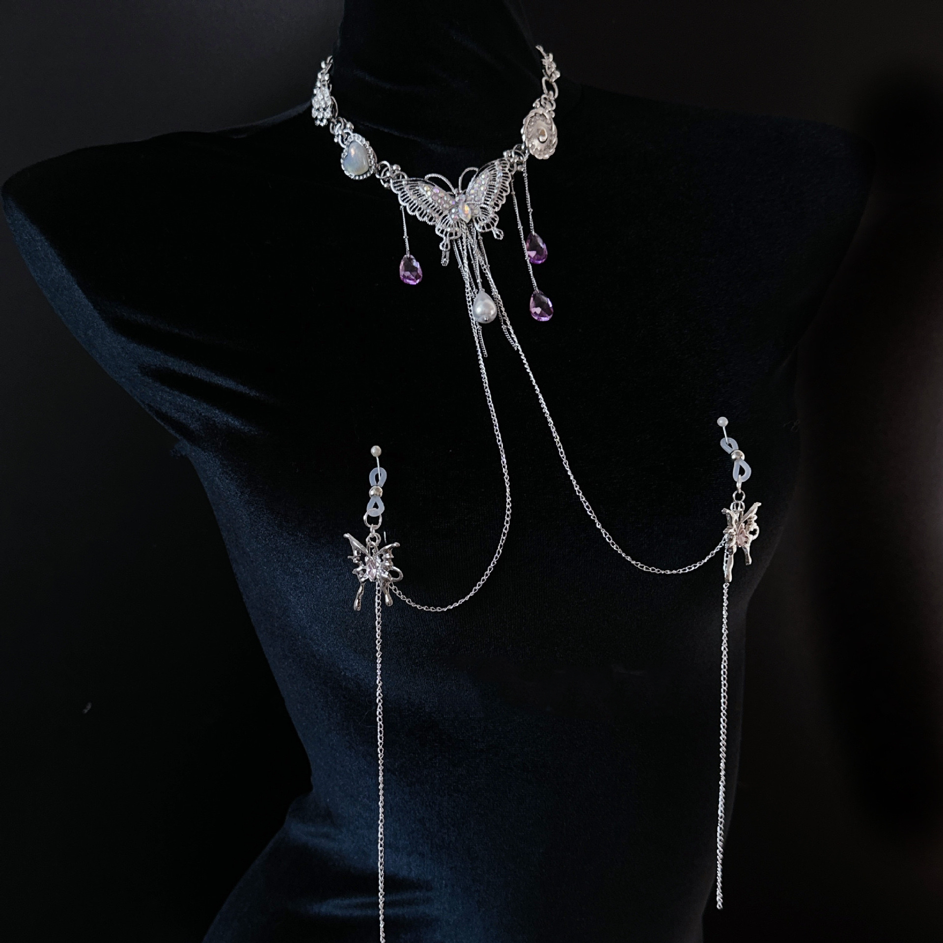 CAROLLL仲夏夜之梦华美紫色水晶乳夹胸链可外出腰链