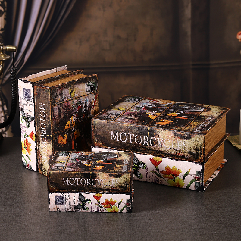 北欧复古木质假书收纳盒做旧皮革仿真书家居办公室背景道具书模型