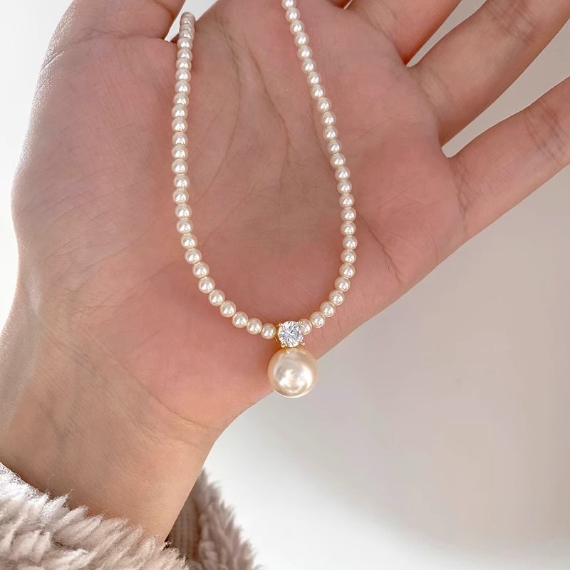 施家水钻珍珠卫衣毛衣链女小众高级秋冬颈链2025年新款爆款锁骨链