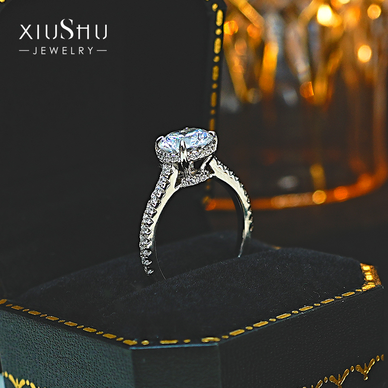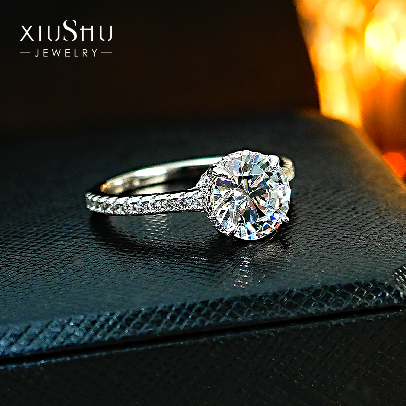 轻奢1.5克拉圆钻925纯银钻戒镶嵌高碳钻八星八箭求婚礼物闺蜜女