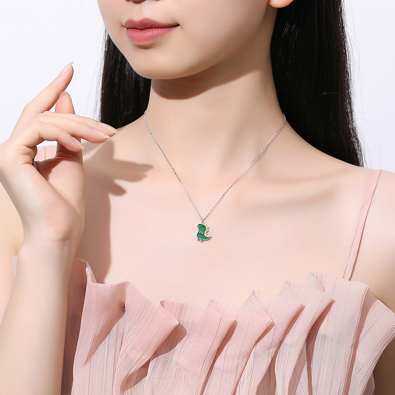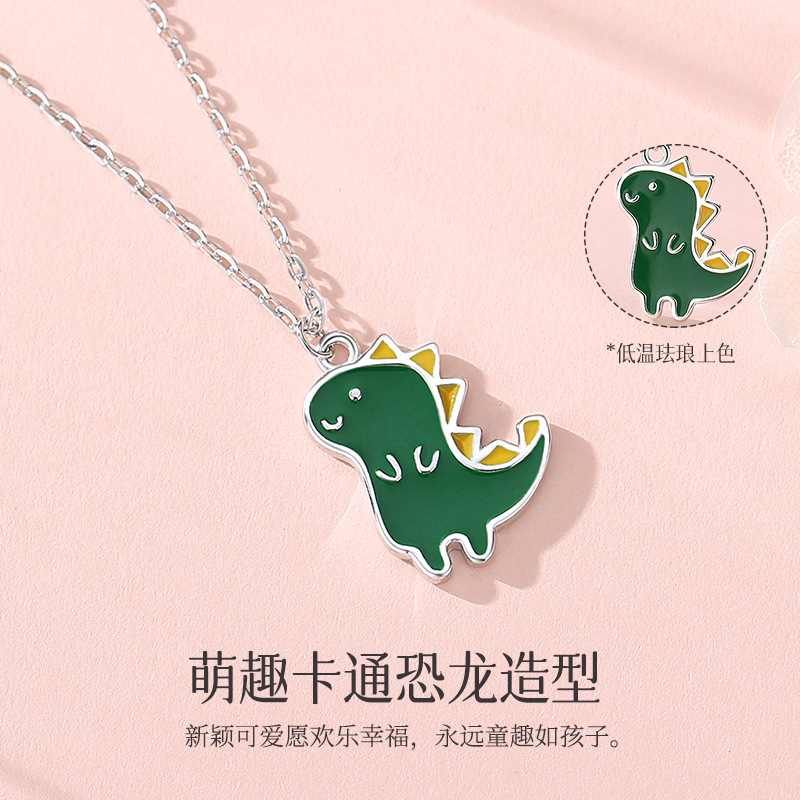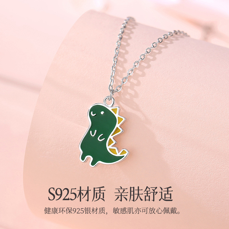 实拍绿色小恐龙项链女S925纯银小众设计可爱卡通超萌高级感锁骨链