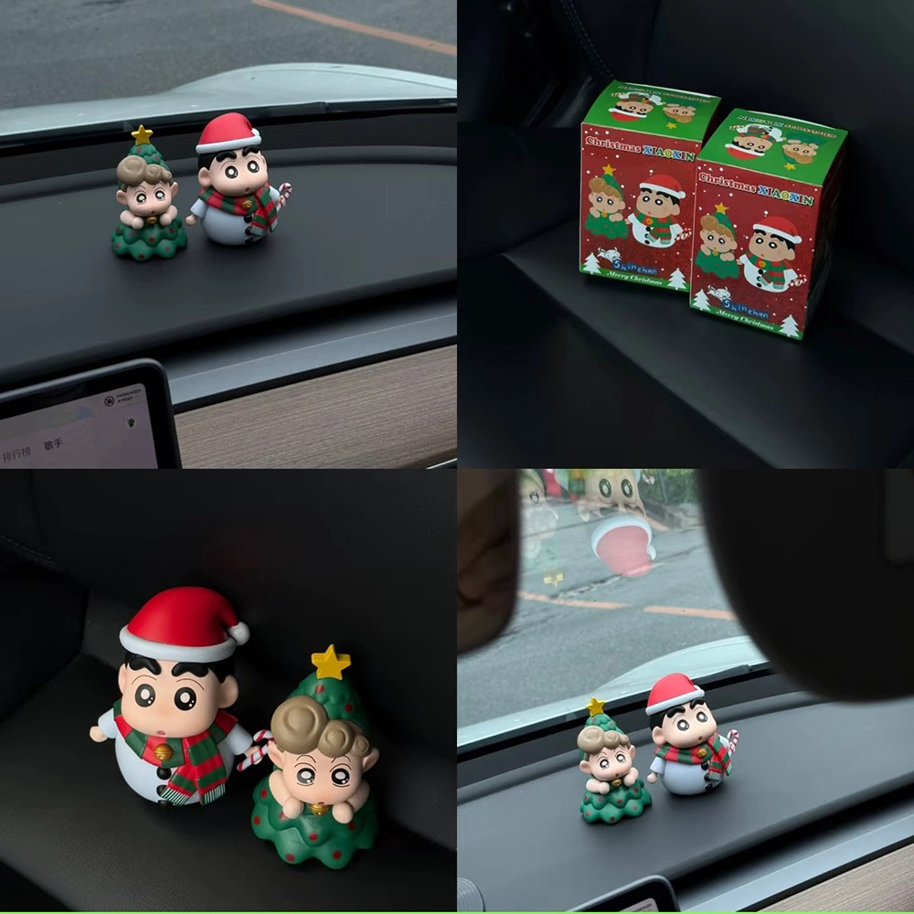 蜡笔小新手办圣诞节创意小礼物雪人治愈系桌面装饰可爱车载摆件