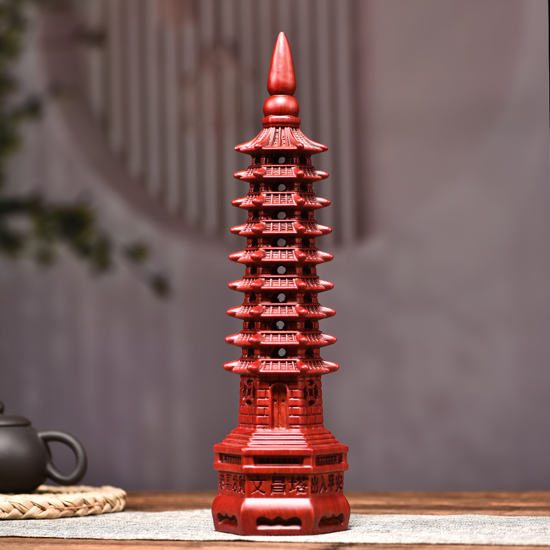 红色实木文昌塔摆件木头木质十三九13层书房办Q公室书桌装饰工艺