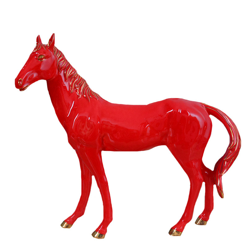 德化瓷器化红色陶瓷马到s成功摆件创意可爱十二生肖家居摆设工艺