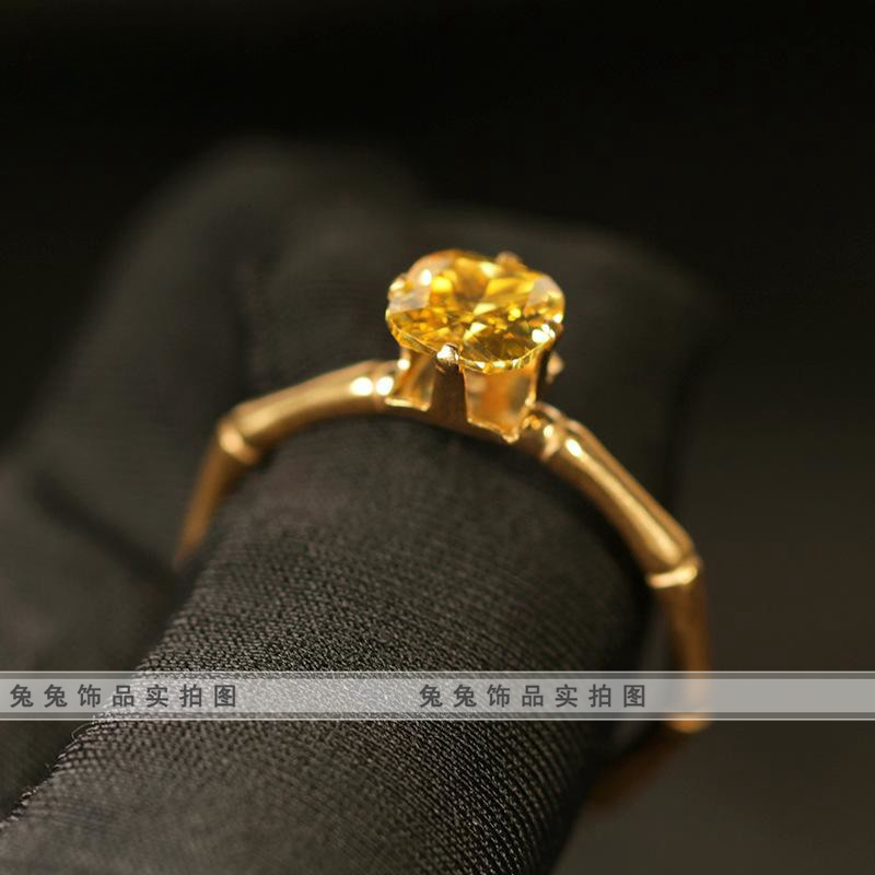 【钛钢不掉色】新款竹节小黄钻戒指小众ins轻奢百搭精致竹节指环