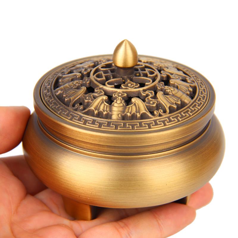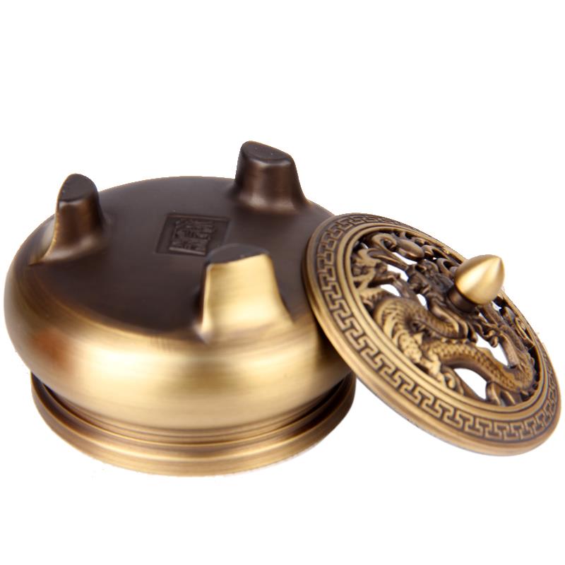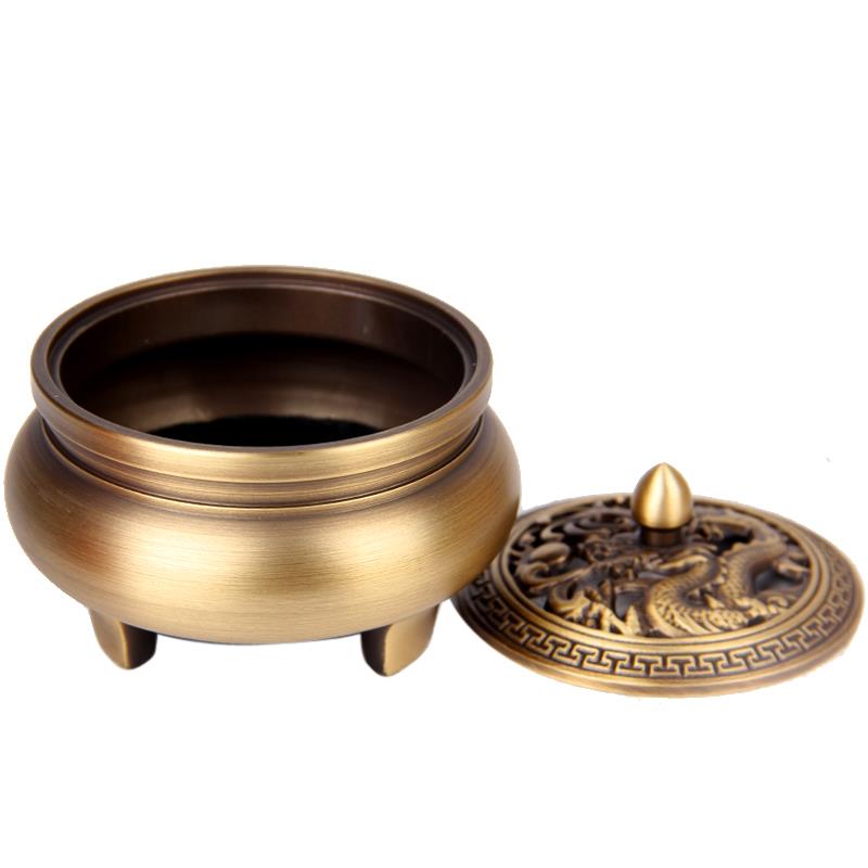 卓好 带盖三足铜香炉摆件 龙款铜香炉 鸳鸯款五福临门款铜香炉