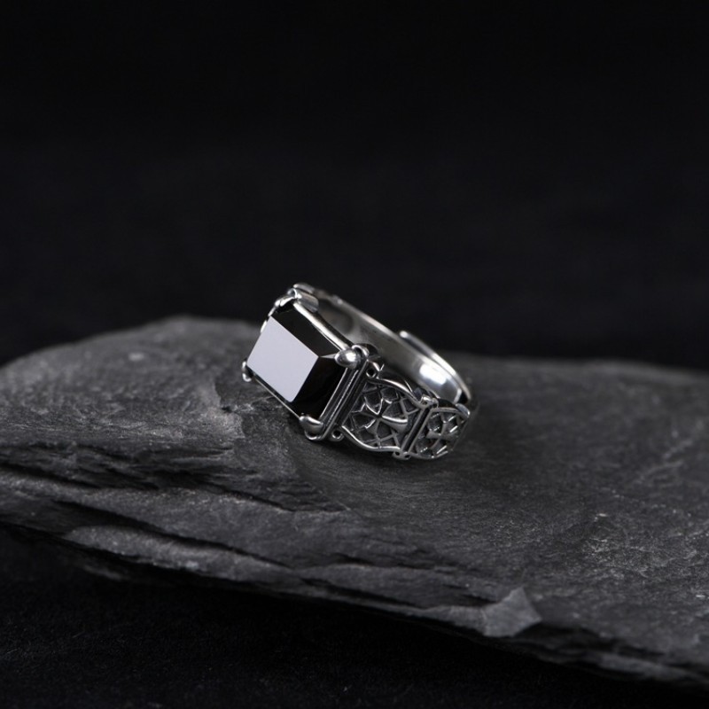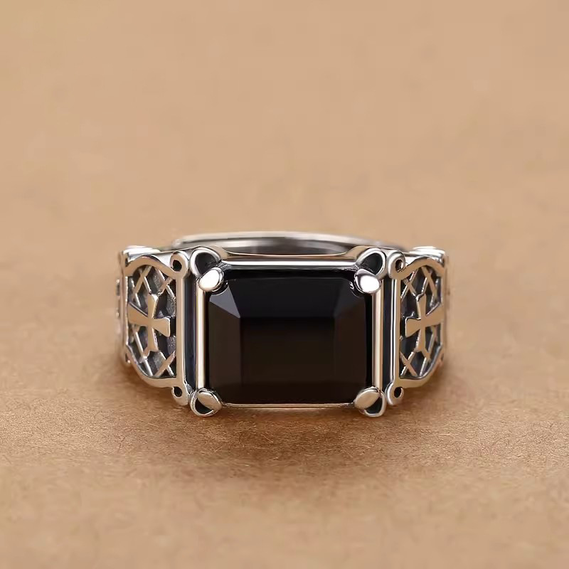 新款男士十字架戒指个性霸气潮流嘻哈单身戒黑色石指环