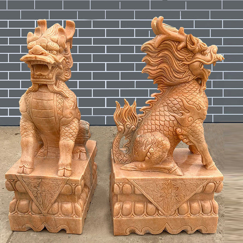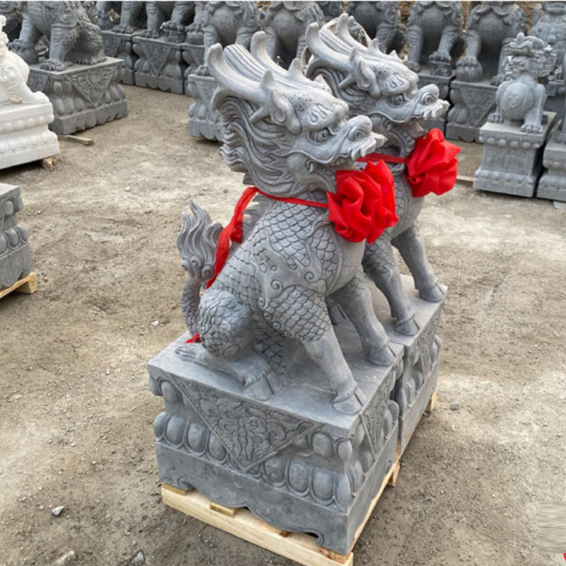 供应看门麒麟青石瑞兽石雕动物雕塑仿古古建园林门口摆件石雕麒麟