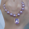 2024新款紫色珍珠项链简约优雅气质小众锁骨链短款毛衣链大气吊坠