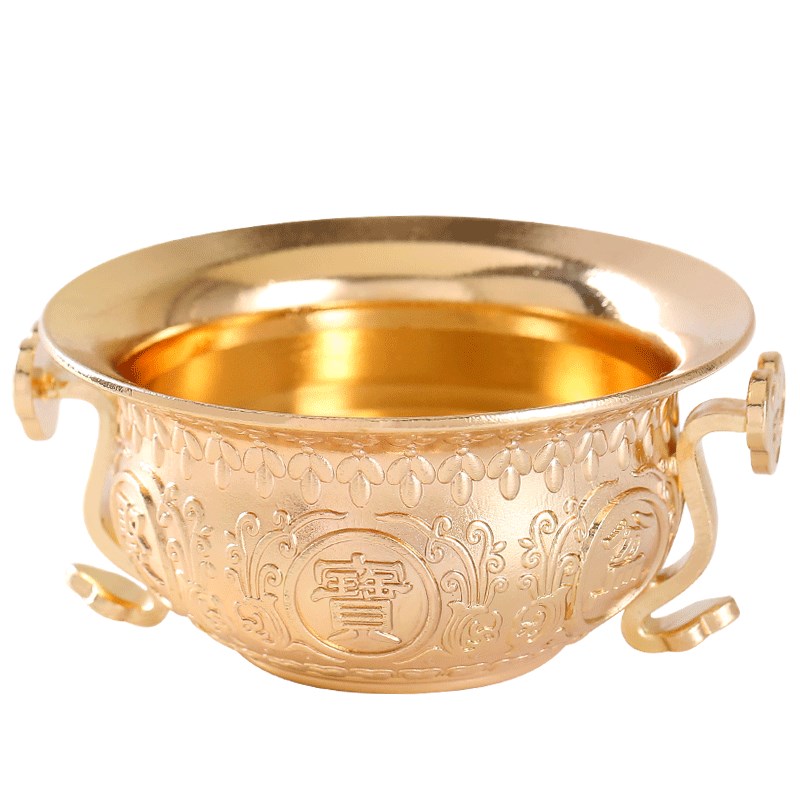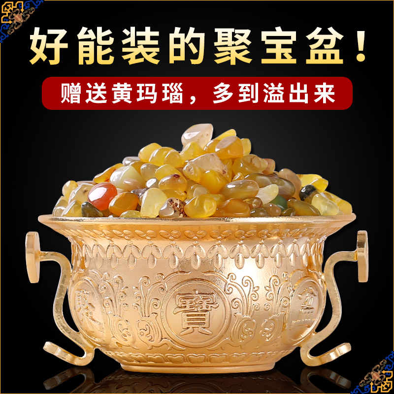 极速黄铜如意聚宝盆居家装饰供奉C财神装藏办公室客厅室内家用摆