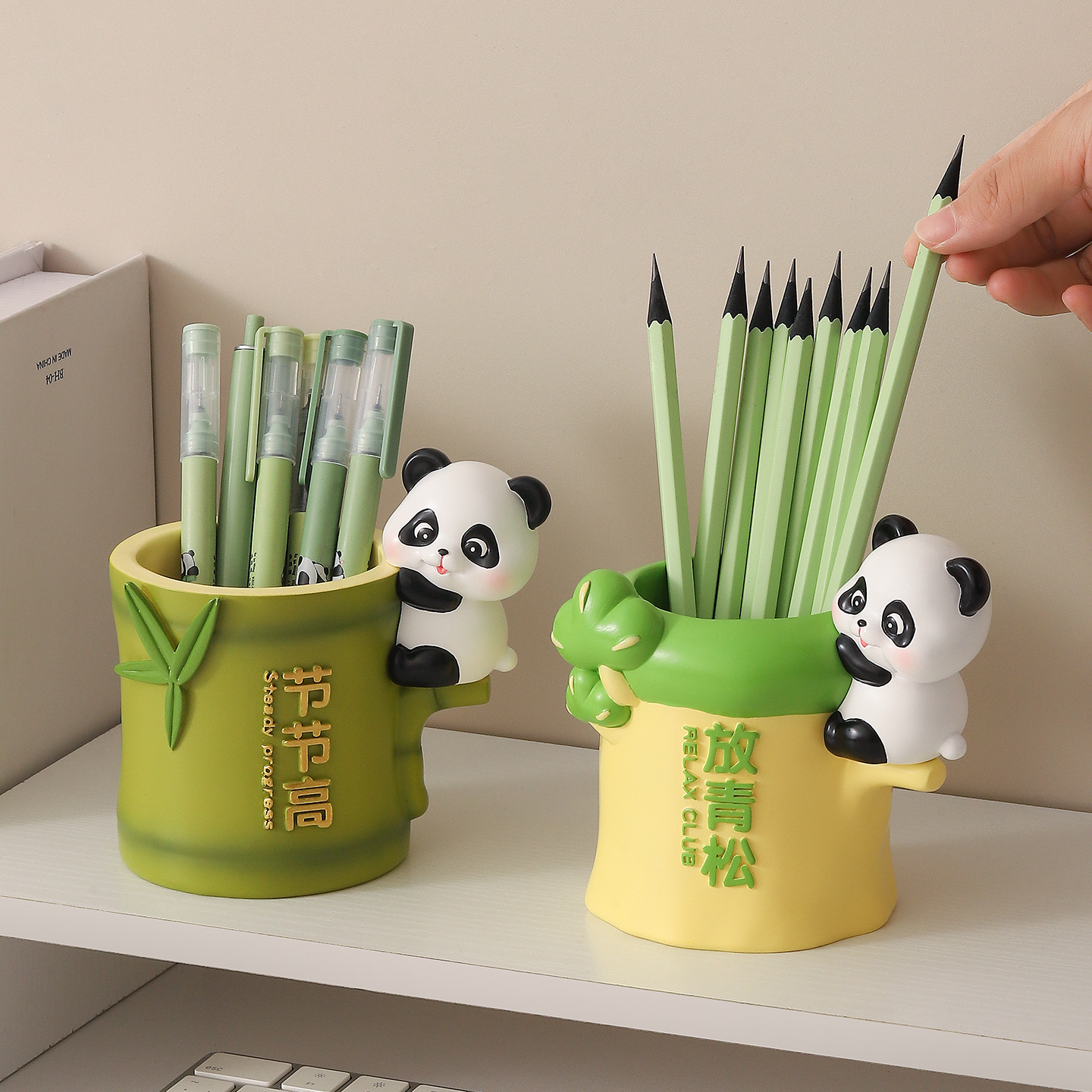当前位置:首页>商品详情>放轻松熊猫文创笔筒摆件办公桌面节节高升励志装饰生日礼物送女生