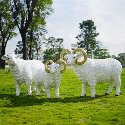 户外玻璃钢仿真山羊雕塑绵羊模型庭院饭店幼儿园草坪动物装饰摆件