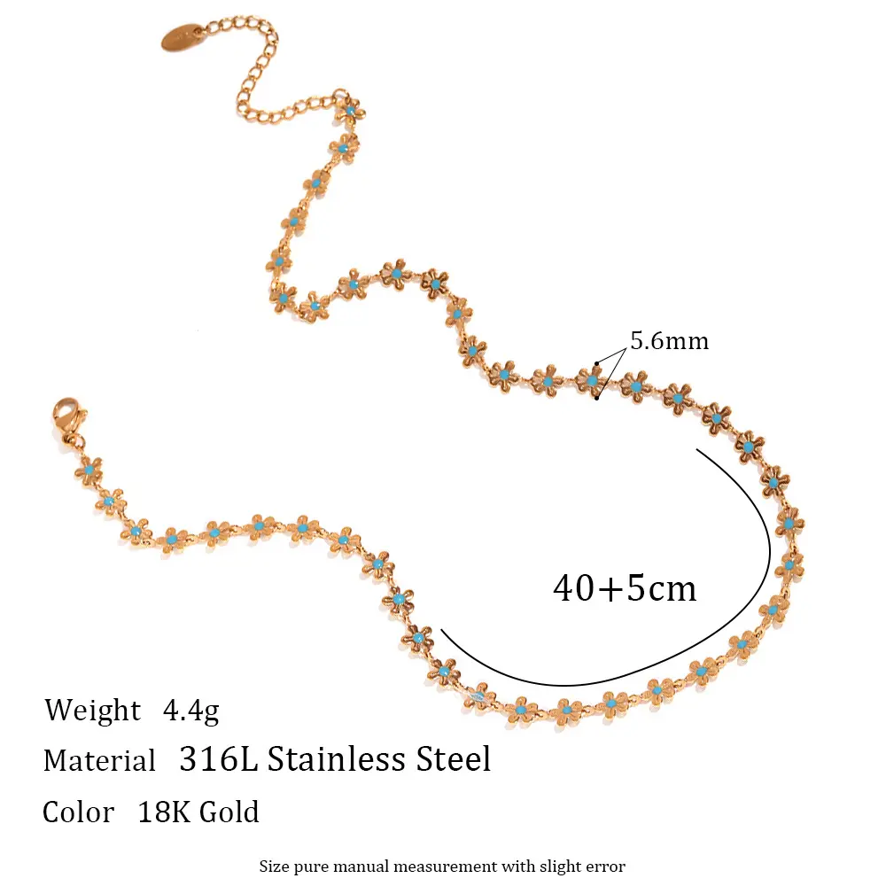 欧美时尚个性复古手链套装不锈钢镀18k蓝色滴油小花手工链项链女