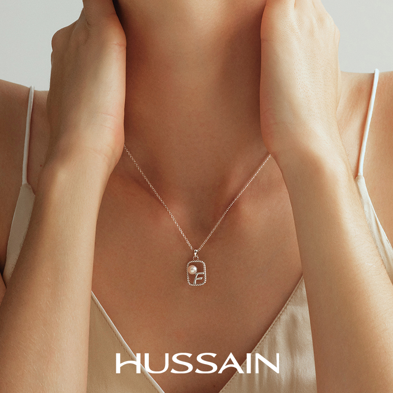 赫生HUSSAIN独铭字母珍珠项链吊坠轻奢小众设计女2025新款高级感