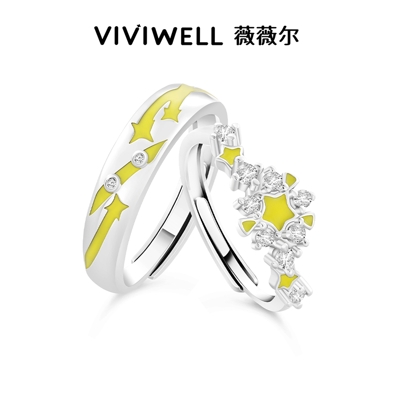 VIVIWELL繁星降落 夜光流星情侣对戒女轻奢小众设计S925纯银戒指