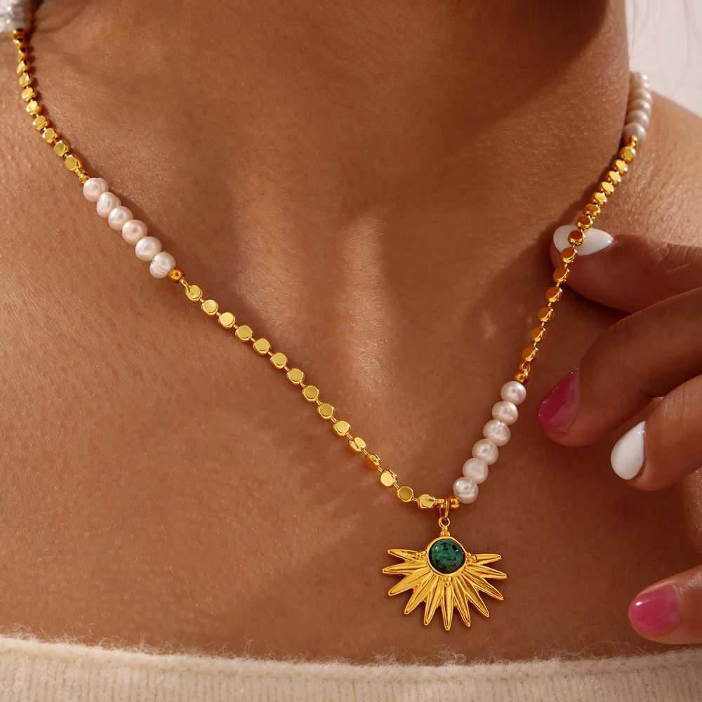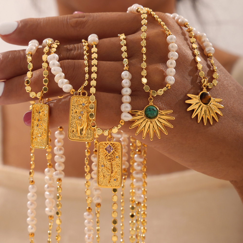 跨境小众几何镶嵌设计感吊坠个性饰品淡水珍珠拼接方糖铜项链