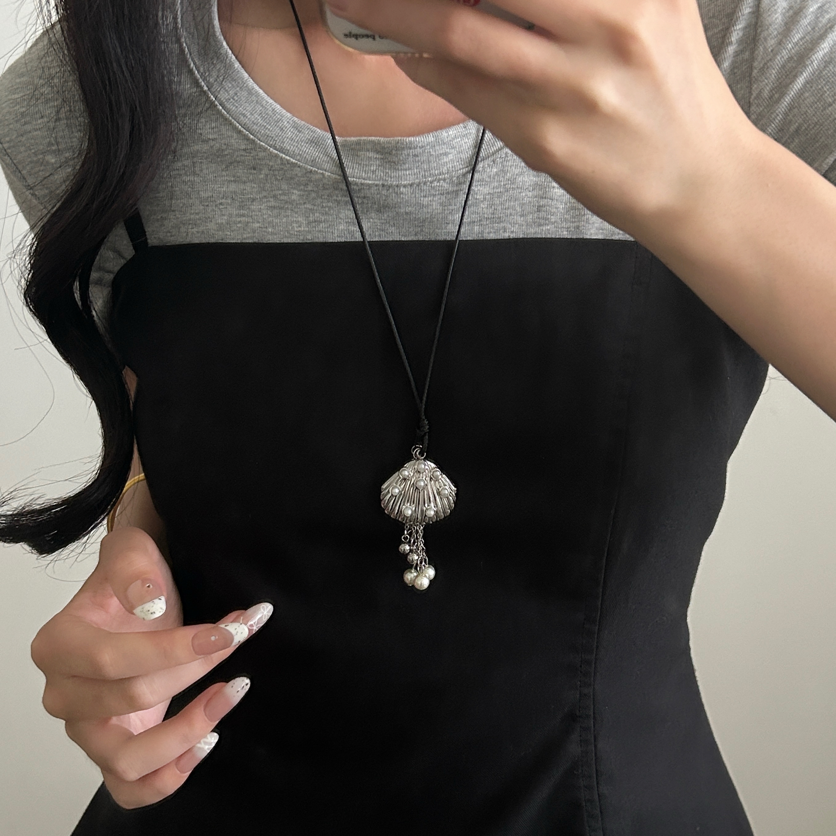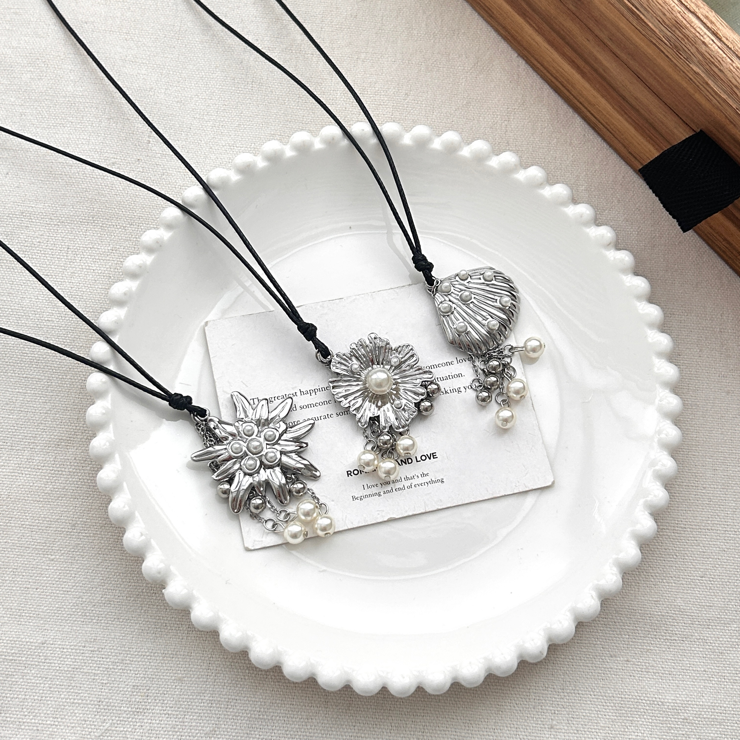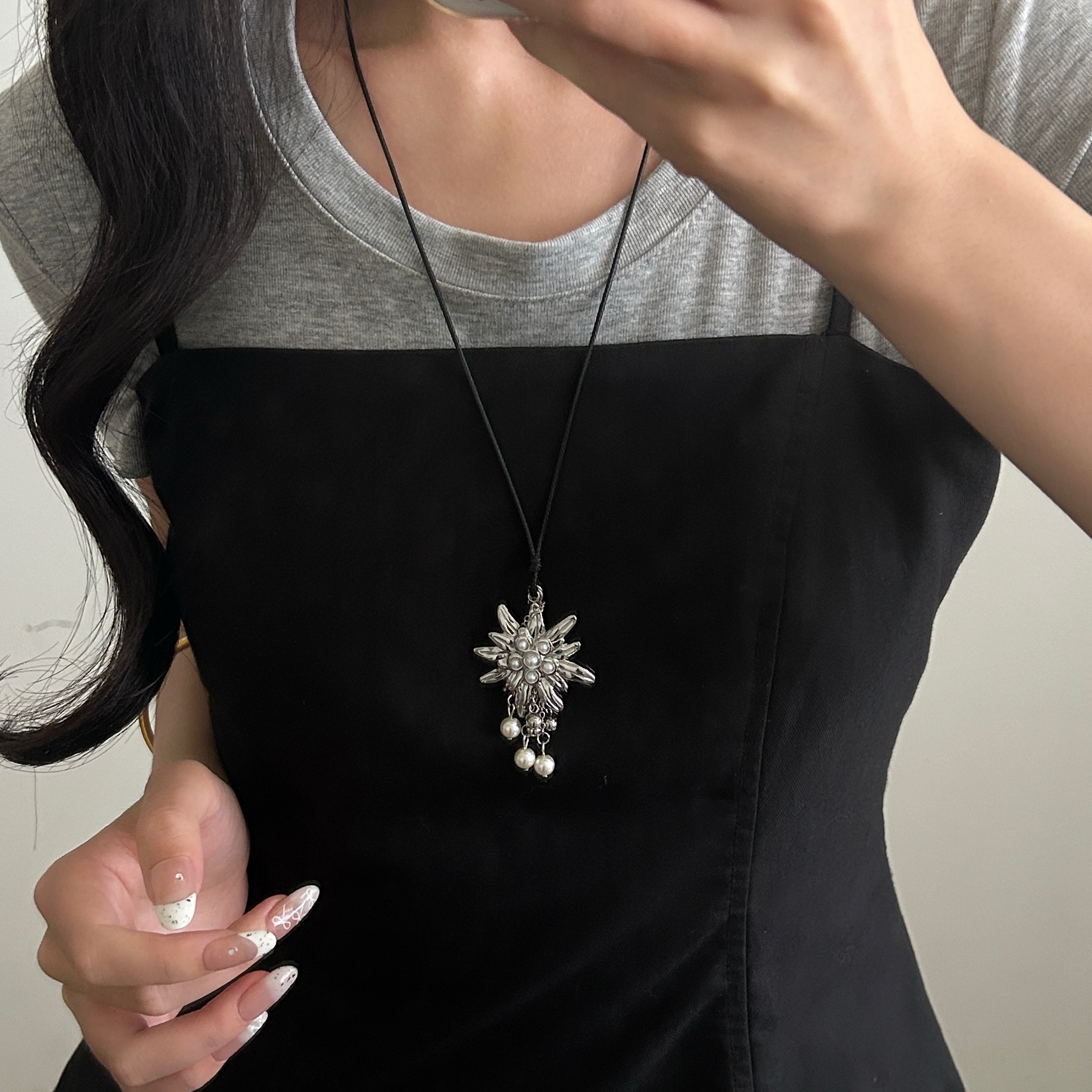 2025新款花朵珍珠吊坠项链女小众设计高级感锁骨链时尚百搭毛衣链