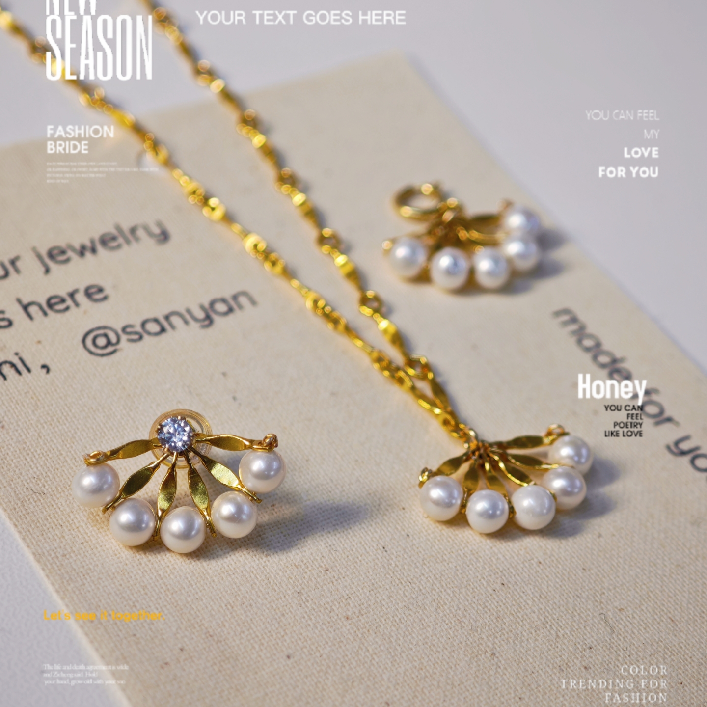 原创设计新中式天然淡水珍珠扇子扇面项链女锁骨链耳钉耳环不掉色