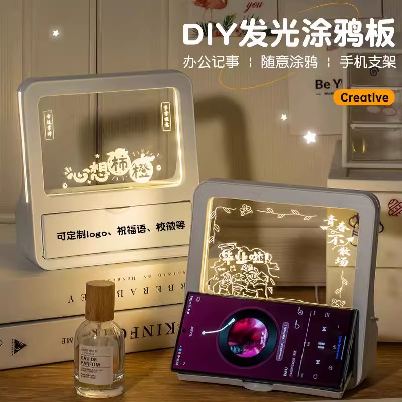 3D笔筒小夜灯创意礼物涂鸦学生留言记事小摆件毕业纪念品生日礼物