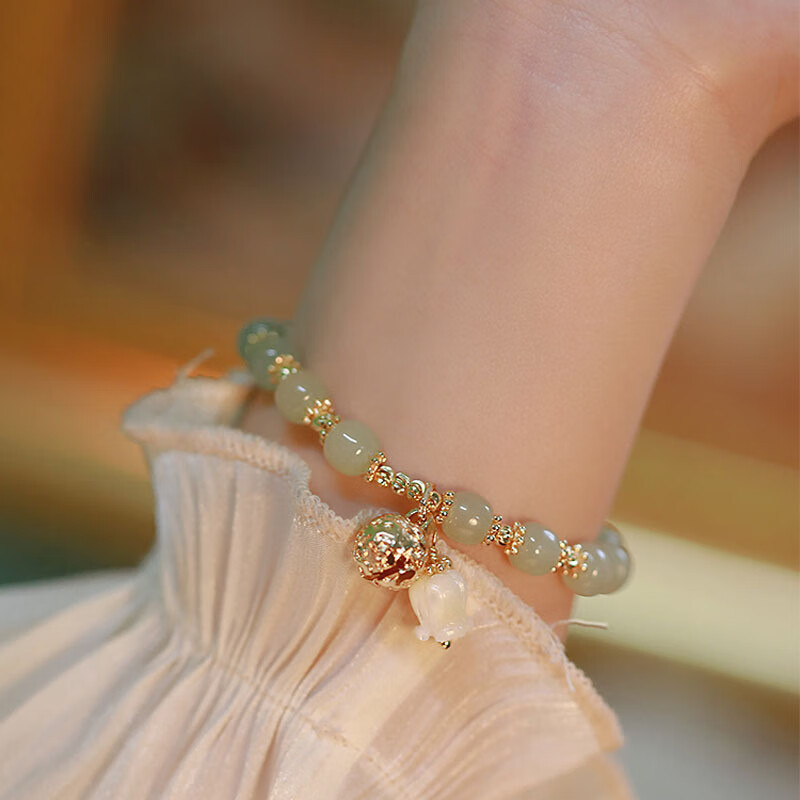 天然和田玉手链串珠女贝壳铃兰花国学浮世万千新中式手串轻奢礼物