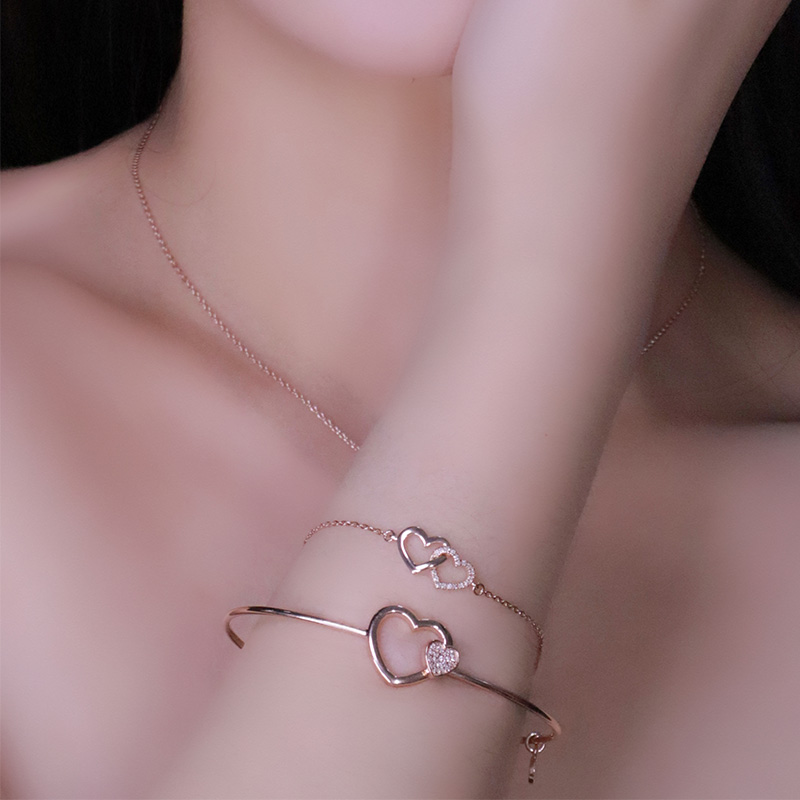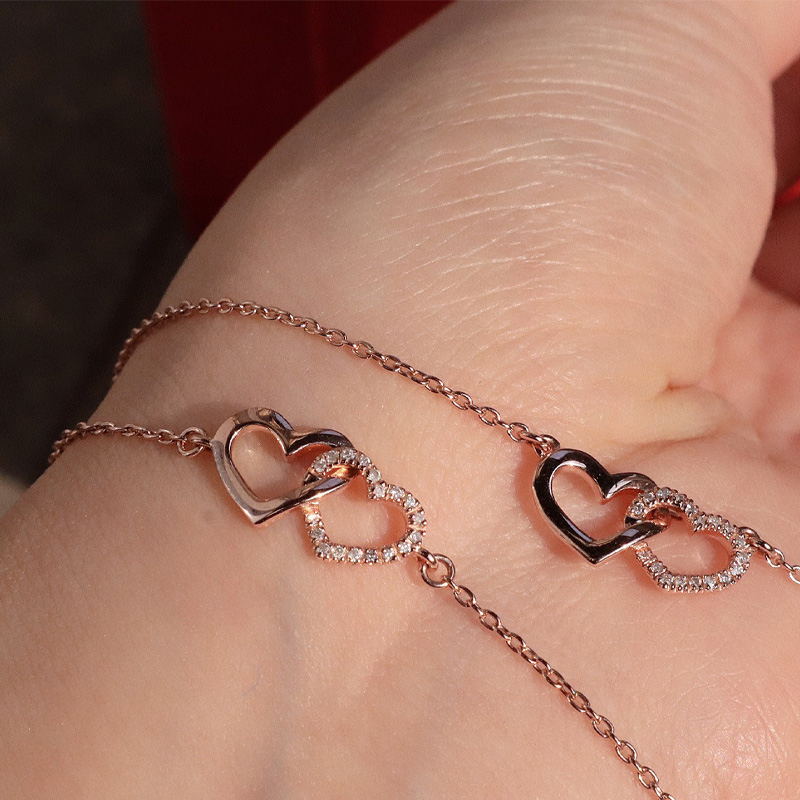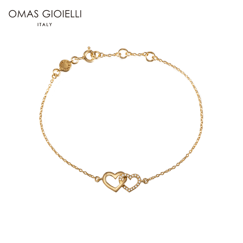 意大利OG心动系列925银镀金简约手链心连心送女友新年情人节礼物