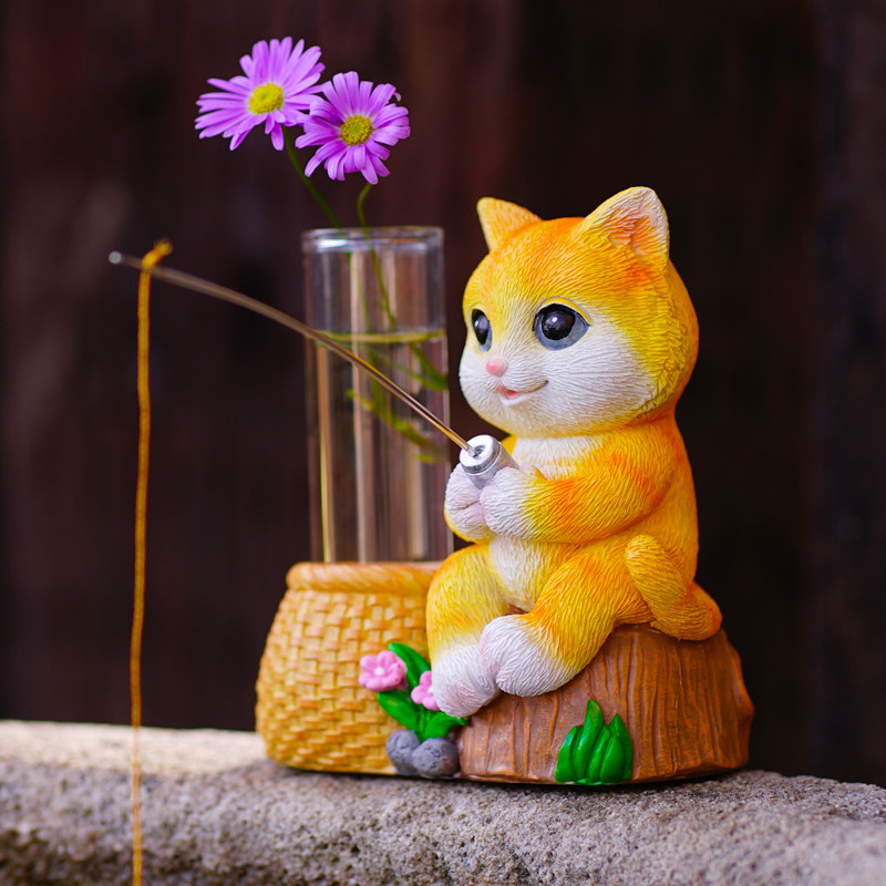 小猫钓鱼翁假山流水鱼池塘造景古法养鱼缸装饰花园庭院微景观摆件