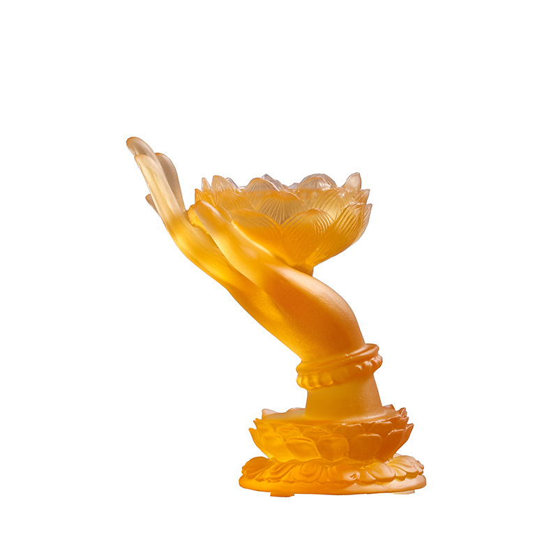 古法琉璃佛手莲花烛台酥油灯座家用佛前长明灯供灯蜡烛灯佛具用品