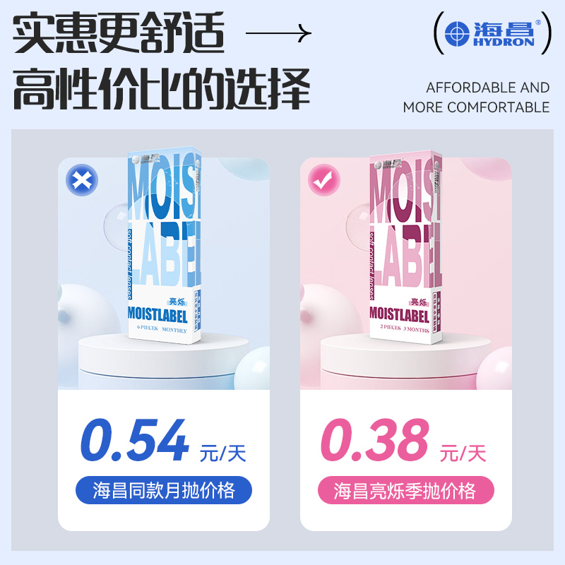 海昌季抛隐形眼镜2片装近视亮烁透明片小直径水润官网正品旗舰店